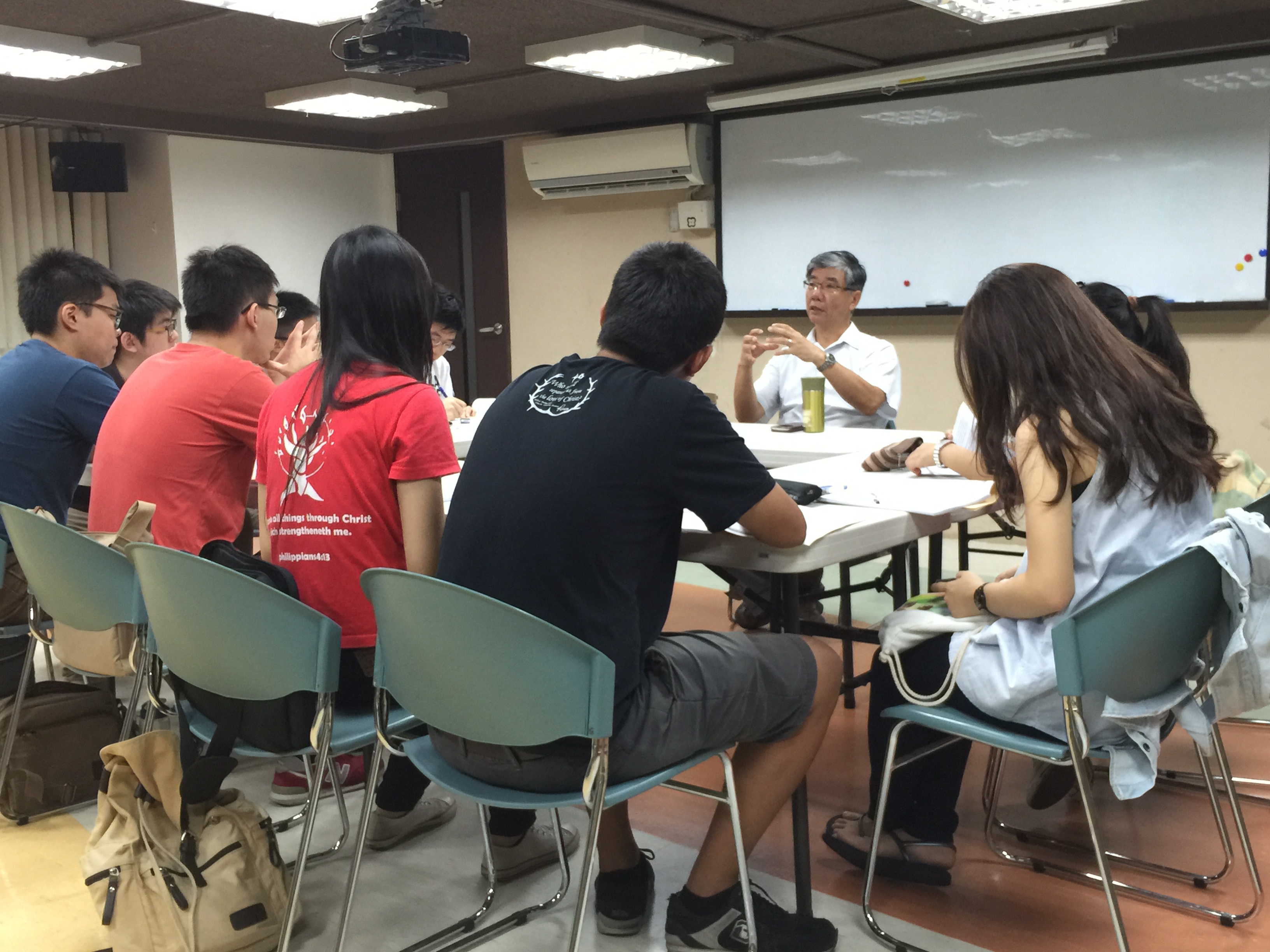 東海長青畢契吳祈得分享「校園以外的大專宣教可能性」。(林佳勳牧師攝) 第四天颱風來襲,東海長青畢契、目前在台灣神學院就讀的吳祈得不畏風雨,照常前來分享。他從自身的經驗反思,提醒學弟妹要認識自己、認識群體的信仰。他也提到參與「太陽花運動」的經驗,及分享「校園以外的大專宣教可能性」。颱風夜,還有畢契大老遠從宜蘭趕過來,帶來晚餐與學弟妹們分享。集訓營期間的每日下午,是東海長青學生練詩的時間,他們將在暑假期間,到四間教會獻詩,分享見證。 ※東海巡迴場次,歡迎就近參與,並給予學生支持!※ 7/12(日)台中愛國蒲教會獻堂感恩禮拜獻詩 7/18-19(六)(日)新竹中正教會 8/15-16(六)(日)高雄中山教會 8/29-30(六)(日)台北古亭教會 9/12-13(六)(日)台中東榮教會