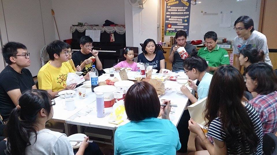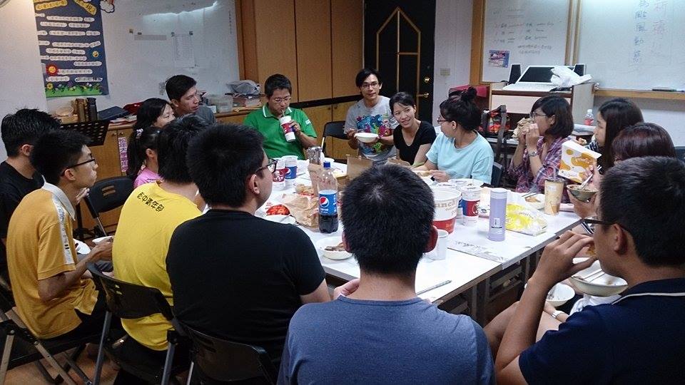 畢契在颱風夜特別送晚餐來和學生一起分享。還有畢契大老遠從宜蘭趕過來。(林佳勳牧師攝) |