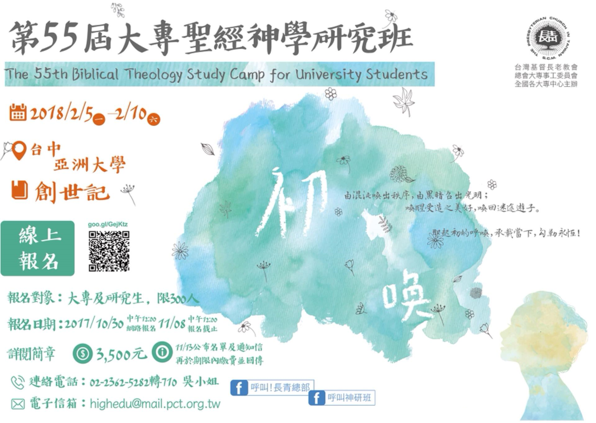 2018年第55屆大專聖經神學研究班◎營會資訊(第二階段報名至11/27)