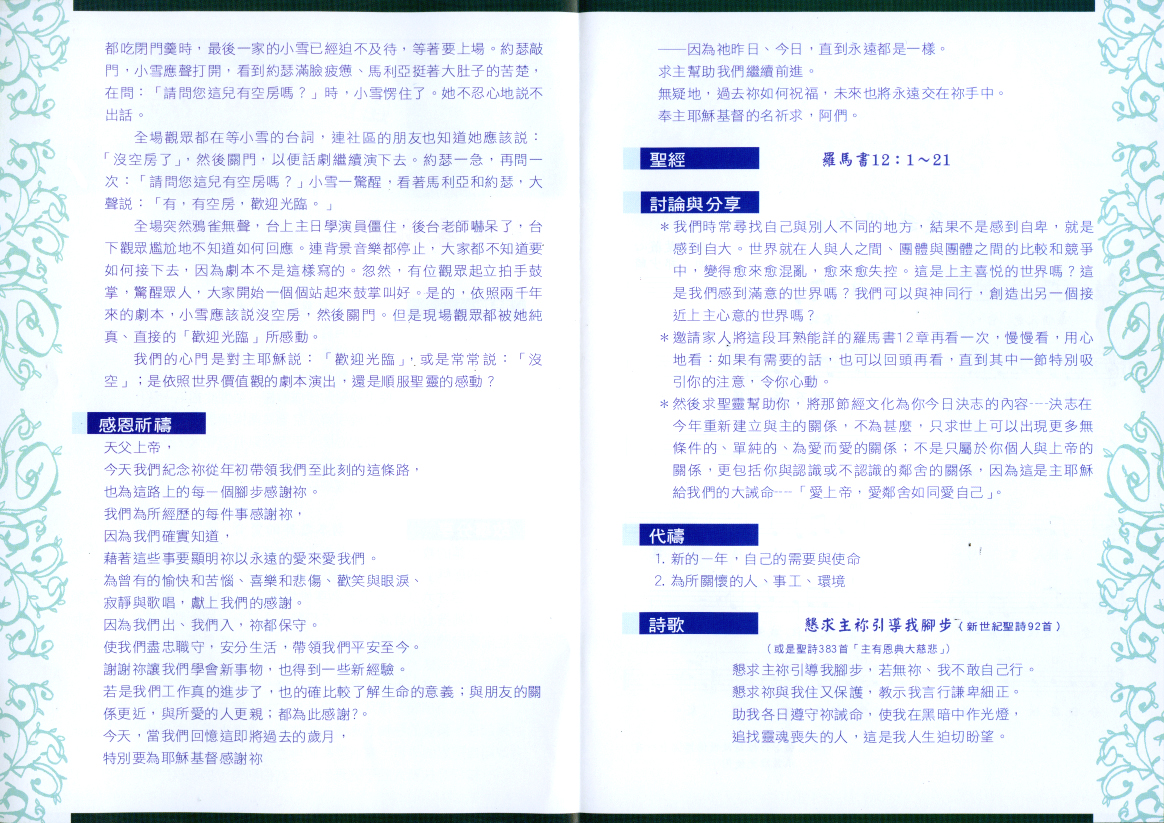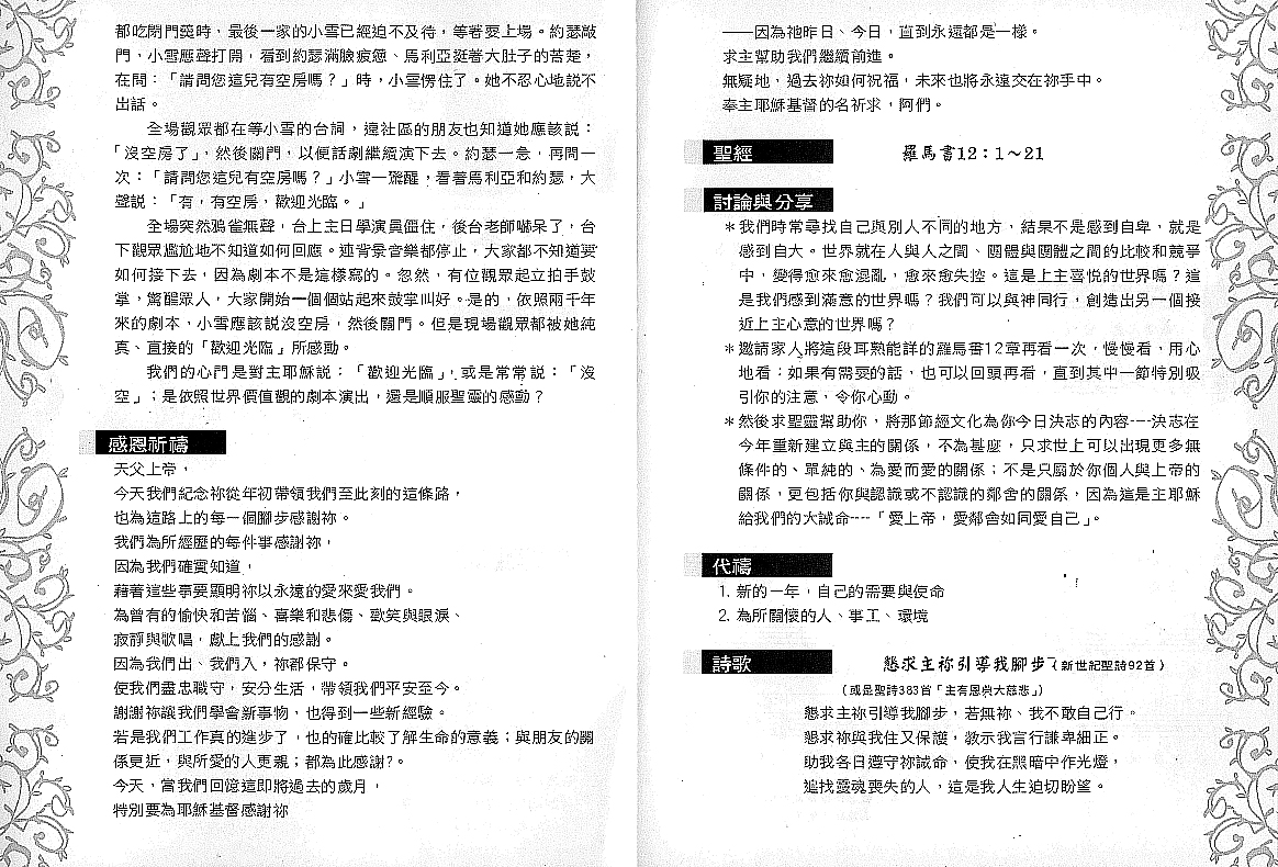 新春家庭禮拜。天父恩典真正大、劇本之外的驚奇、愛我們的家、羅馬書12:1-12。