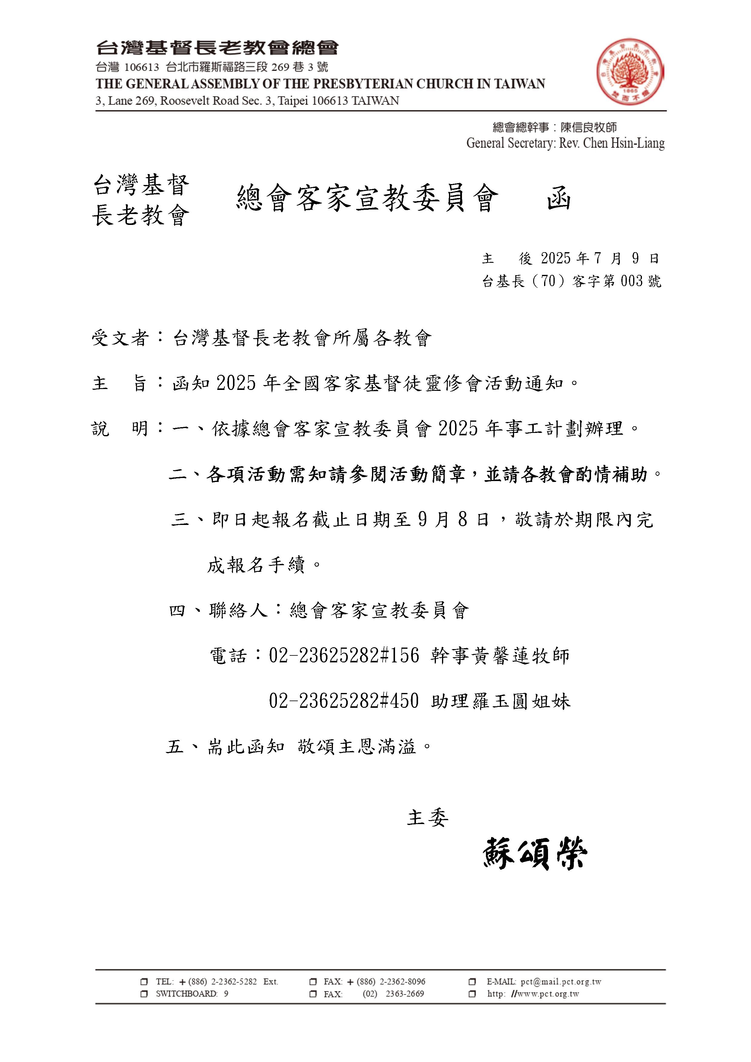 powered by ICPCT. 台灣基督長老教會總會資訊中心 建置維護