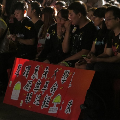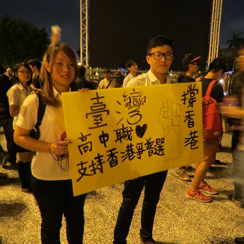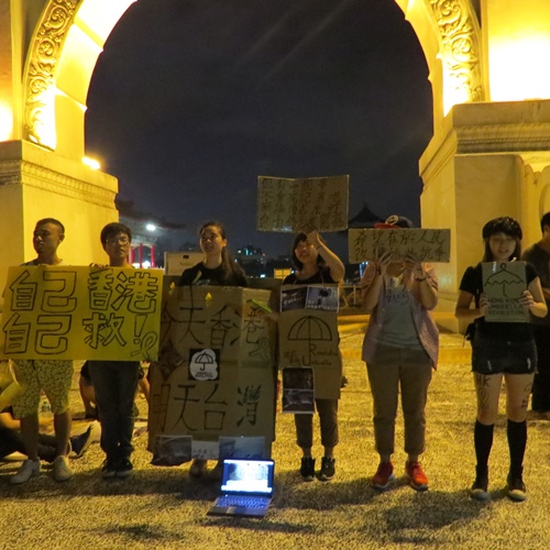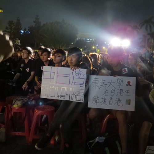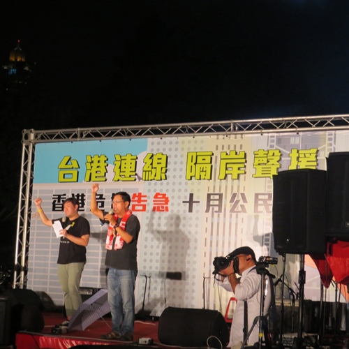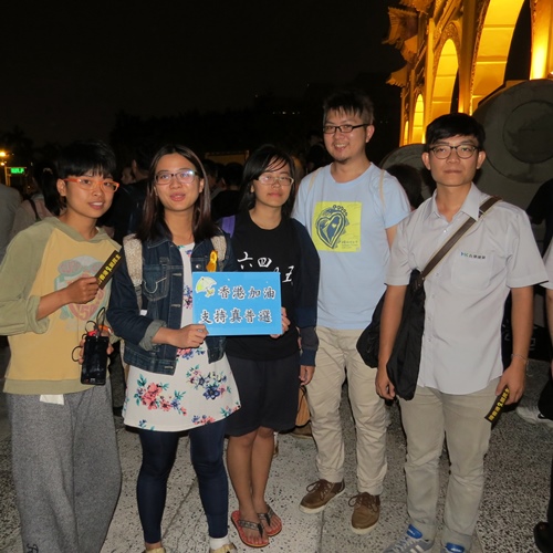 為聲援香港的佔中運動,港澳在台民主同盟10月1日晚上在台北的自由廣場,發起「香港危城告急,十月公民抗命」晚會,主辦單位表示,到晚上8點,現場已齊聚上萬人,民運人士吾爾開希,島國前進發起人林飛帆、陳為廷、民進黨主席蔡英文都到場聲援。 許多大學生胸前別上黃絲帶、眼蒙紅布條、自備海報、自製標語席地而坐,跟著台上呼口號,也有學生撐著雨傘行走,或在雨傘上留言,以實際行動聲援香港佔中運動。總會普世、教社、研發中心幹事、大專中心牧者及PCT教會青年都不約而同,前往自由廣場了解學生感受。 總會教社委員會幹事林偉聯牧師表示,政府部門使用軍警的力量維繫政權,是任何人都無法接受的,這是一個民主國家不應該有的現況。中國原本承諾香港保持 50年不變,此次卻完全忽視港人自治的訴求,也造成香港人的反彈。這次香港教會針對香港警力的濫用發出強烈譴責的聲明,身為普世教會的一員,PCT也予以贊同和肯定。也要再一次呼籲香港政府謹慎使用警察權,不要對民眾施以暴力。 總會研發中心幹事黃哲彥牧師觀察,此次香港公民的佔中行動,也是給馬政府一個警惕:不要過度傾中。他表示,從這次的佔中行動可以看到香港的媒體控制非常厲害,竟然只有香港的蘋果日報或獨立媒體敢報導佔中消息。在台灣,傾中的旺旺集團的媒體刻意隱匿消息或扭曲報導,幸好還有幾家大報社願意披露,否則台灣人民就要失去寶貴的言論自由。至於台灣的未來如何,則要看台灣人民這次是否能從中學到教訓,真正的覺醒。