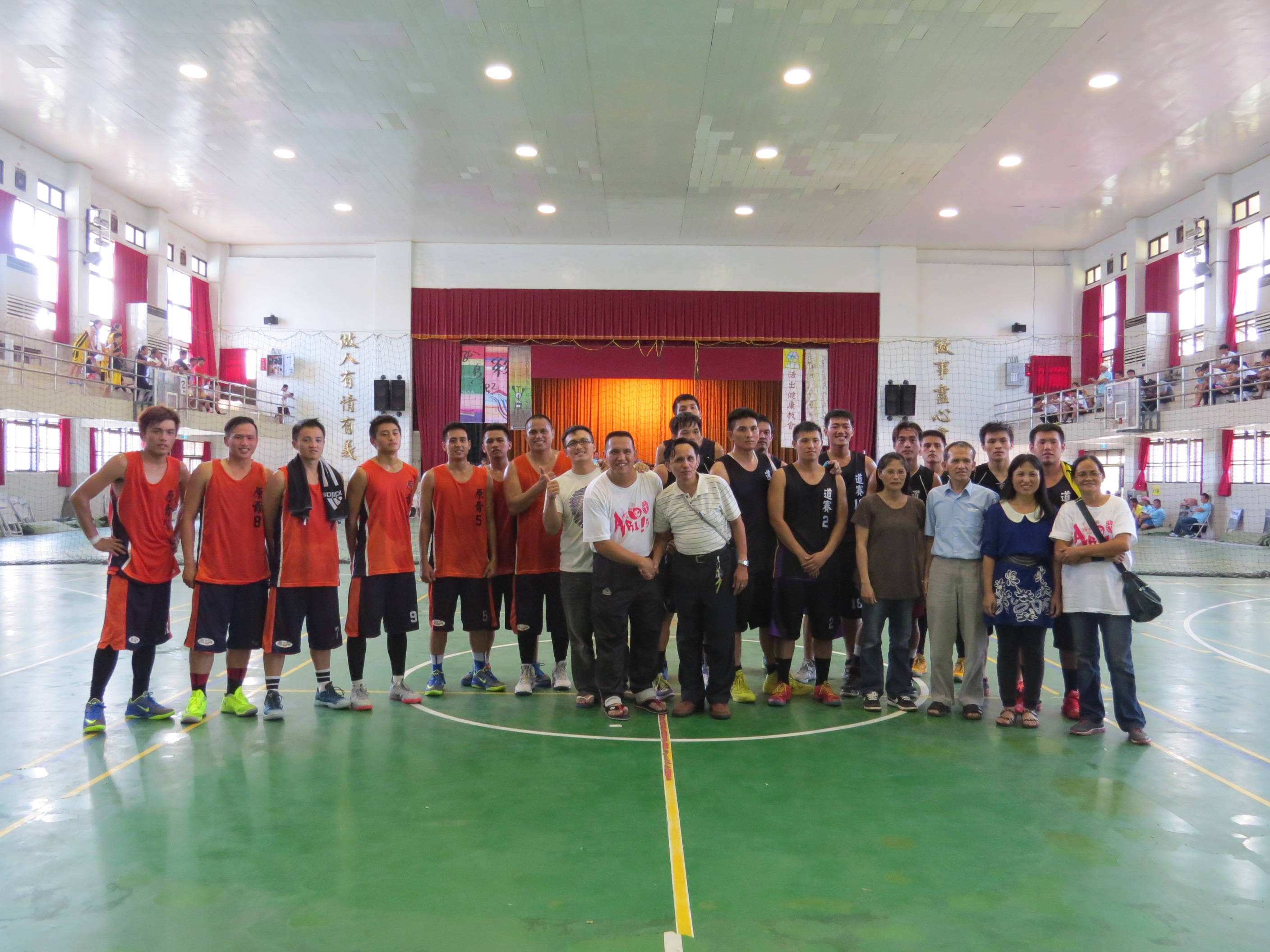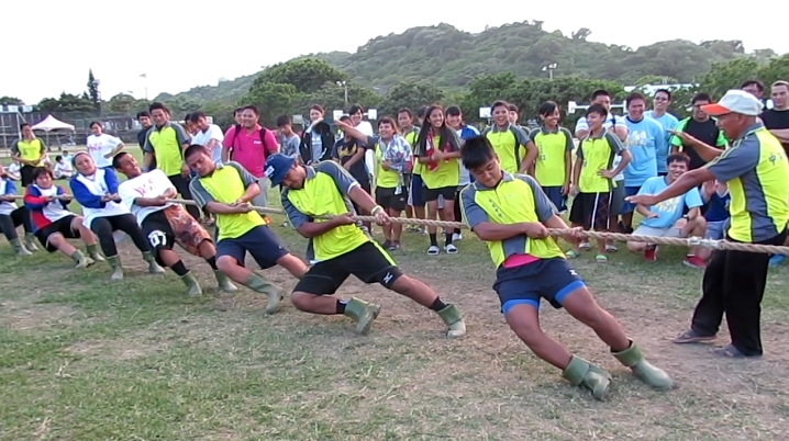 花蓮原住民大專表演 第二天繼續進行預賽,下午進行籃球決賽,泰雅爾中會挾著連年舉辦「泰青盃」的優勢,隊員們特別有默契。男子組的比賽,競爭特別激烈,阿美中會、泰雅爾中會、太魯閣中會打得難分難捨。最後也由這三中會包辦冠亞軍。 第二天下午的拔河比賽,展現原青的力與美。曾任台灣拔河運動國家代表隊總教練蔡三雄牧師,特別提前到場指導前置作業,並擔任裁判,詳細講解比賽規則,確保安全。 在豔陽下比賽,對於體力和耐力是一大考驗。中布中會顯然有備而來,特地穿上雨鞋,攻其不備。沒想到遇到高雄原住民大專中心勢均力敵,爭奪冠軍賽。在高原啦啦隊高聲吶喊助陣下,比賽到第三局,最後高原以2:1獲勝。
