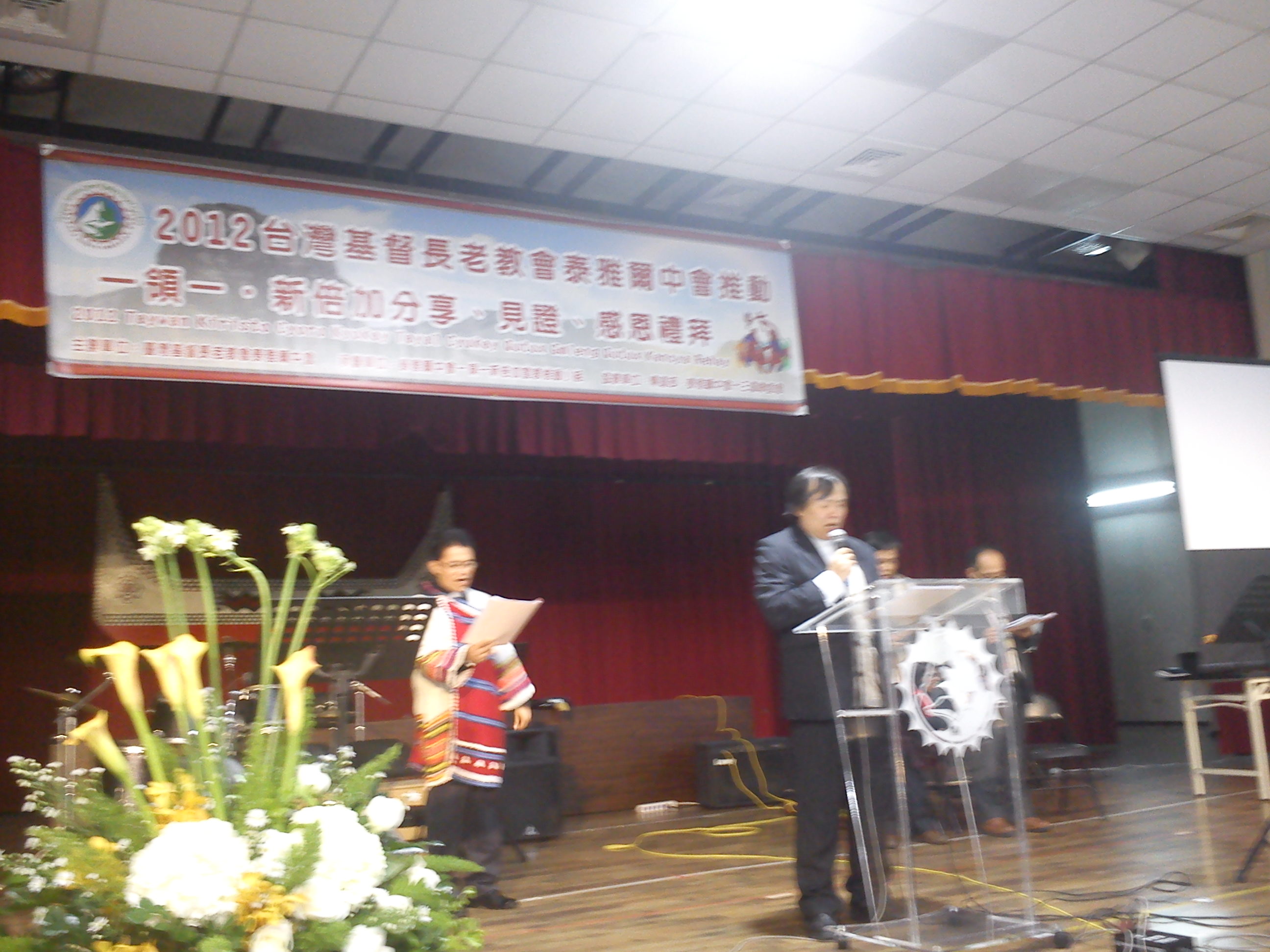 「Tayal、Tayal、Tayal,Qutux Hmuluy Qutux;Tayal、Tayal、Tayal,Qutux Hmuluy Qutux,Lokah,Tayal。」(泰雅爾、泰雅爾、泰雅爾,一個領一個;泰雅爾、泰雅爾、泰雅爾一個領一個;加油! 泰雅爾。)2012年12月8日泰雅爾中會五、六百個牧者、長執、教會新倍加推動小組,齊聚大溪原住民文化會館,室內響徹雲霄的讚美貫破窗外的大雨磅礡,新倍加宣教運動的口號更喚醒眾人的宣教熱情與使命。議長Batu.Temu高清賢牧師以「集中火力、宣教一領一」勉勵各教會長執同工,同一心志、集中火力向中會所定2015年的成長目標奔跑:(1)信徒數每年增加500人(2)教會數每年增加一間(3)訓練開拓都傳牧者10名(4)五年內訓練海外宣教師3~5名(5)推動信徒三獻運動(6)主日禮拜人數提升到70%。 總幹事Yumin Hayung郭錦明牧師表示,泰雅爾中會有114間教會、13個區會,今年1~3月分別到13區舉辦說明會,傳遞異象與宣教策略;如今已有40間教會已成立新倍加推動小組,31間教會確認信徒已有一領一的對象,相信明年勢必增加。中會更將新倍加宣教運動展延到2020年,期待宣教的火持續延燒。「此次舉辦分享、見證、感恩大會,目的是透過各區的分享與見證,數算上帝的恩典。」總幹事Yumin Hayung牧師表示,看到各區及眾教會在短短時間內,就將資料整理好,內心實在感動,這顯示眾牧者對總會所推動的新倍加運動,看為緊急又重要的事,相當令人感恩。近日將彙集各區報告,成冊送到各教會。 大會分成兩階段進行,首先是感恩禮拜,第二階段是13區的教勢與宣教策略分享,而各教會的詩歌讚美及舞蹈穿梭其中,展現原住民的文化宣教特色。分享中看到許多區會/教會推動晨禱、培靈會、節期宣教、關懷部落中的老人、高關懷家庭、兒少課業輔導、產業宣教與部落轉型…等,也舉辦各種舞蹈、歌唱、藍球等文化競賽,在部落中進行多元的宣教。特別是Mnibu區,邀請鄉長、議長、牧長一同為部落中的殘障人士洗腳、舉辦復活節遊行、訓練青年到監獄、養護院傳福音等,服事的同時亦放膽講論基督的愛。而B'nux都北區高舉上帝的榮耀,信徒聚會人數增加108人,成長21.7%;也在楊梅、內灣、桃園市三處設立福音中心,無不看到「主將得救的人天天加給他們」(徒2:47) 「我們每個人都是那塊柴火,集中火力才能讓火焰繼續光照部落。」總會原住民宣教委員會幹事歐蜜.偉浪牧師勉勵與會者。而專員余淑玲傳道師也代表總會新倍加推動中心致詞:「十二月份是福音收割與感恩的季節,相信喜樂傳福音的氛圍必延續到新的一年…我們都是被上帝選召為真道打那美好杖的人,主上帝必與我們同在,在部落做美好的見證。」第一次以中會為主體,舉辦「一領一.新倍加」分享、見證、感恩大會,帶來彼此觀摩與學習、進而產生激動與行動的果效,泰雅爾中會是領頭羊;盼望成為各中會的典範,持續激勵眾教會。 展望明年,泰雅爾中會將集中火力培育上帝的兒女,2~8月分別到各區舉辦門徒培育訓練,讓每位信徒都以「真理當作帶子束腰,用公義當作護心鏡遮胸…拿著聖靈的寶劍,就是上帝的道。」(弗6:14~15)穿上平安的福音鞋在部落愛心服事、社會改造、關懷受造界、以文化宣揚福音等,落實上帝國的宣教。 |