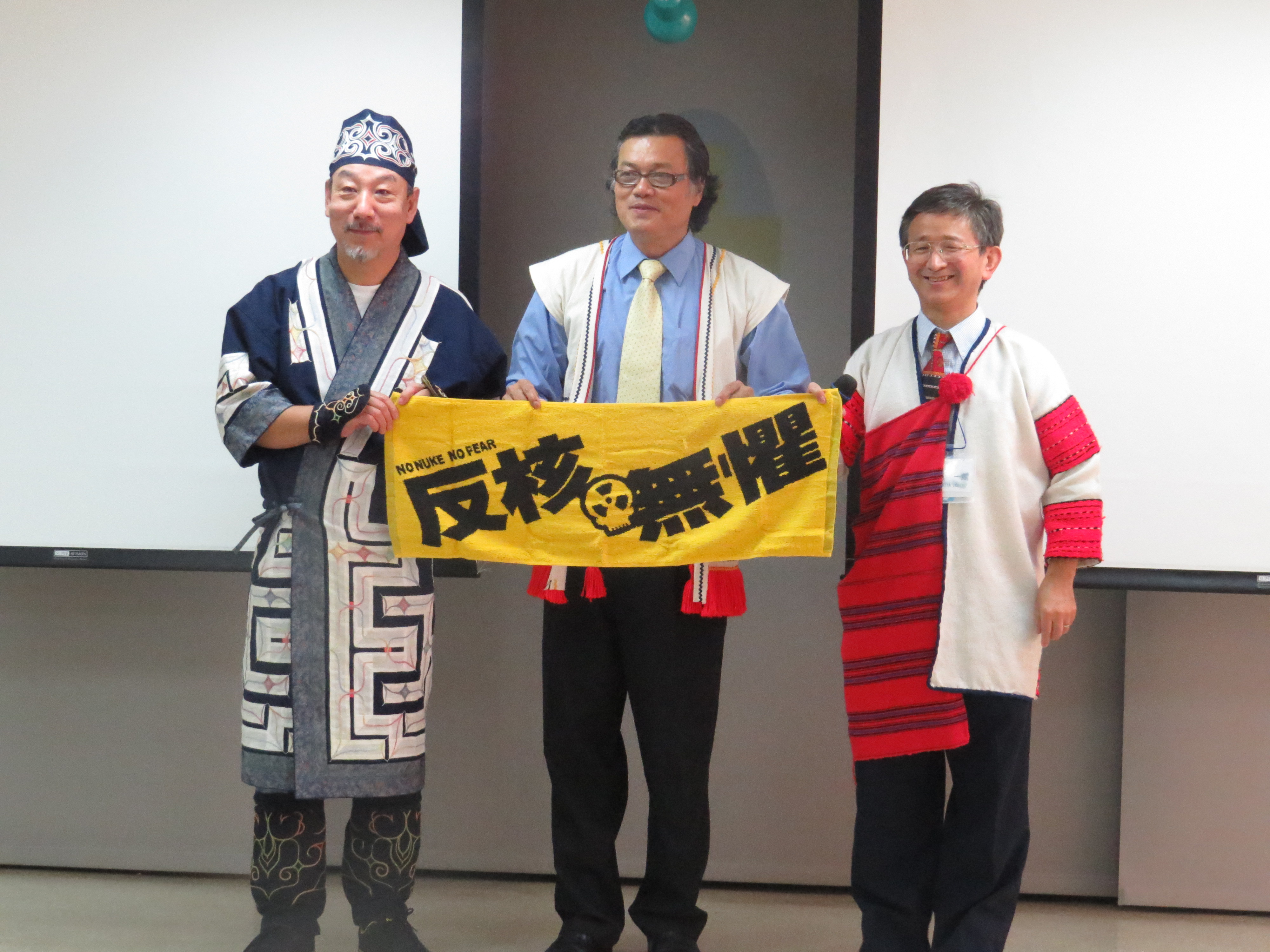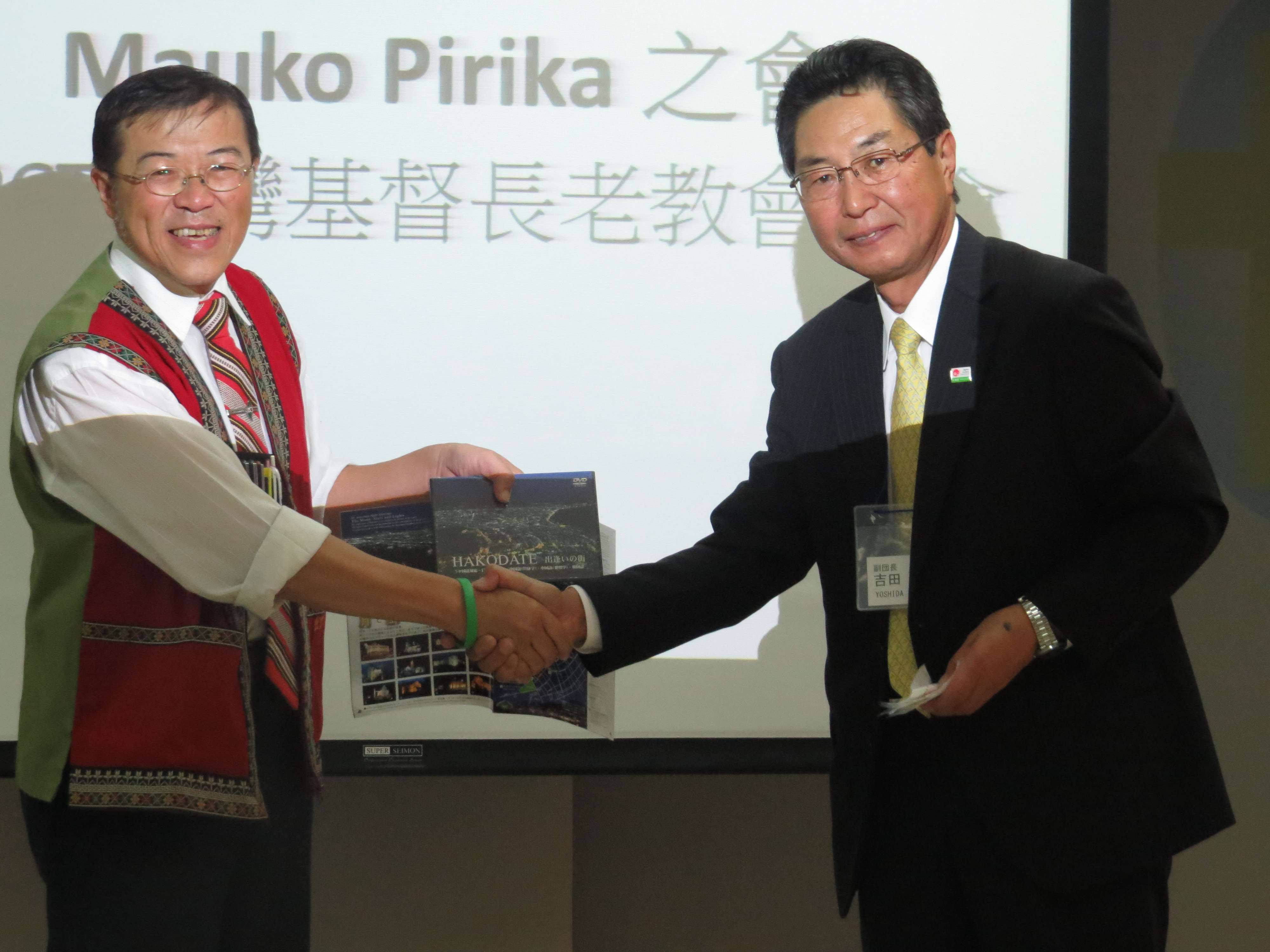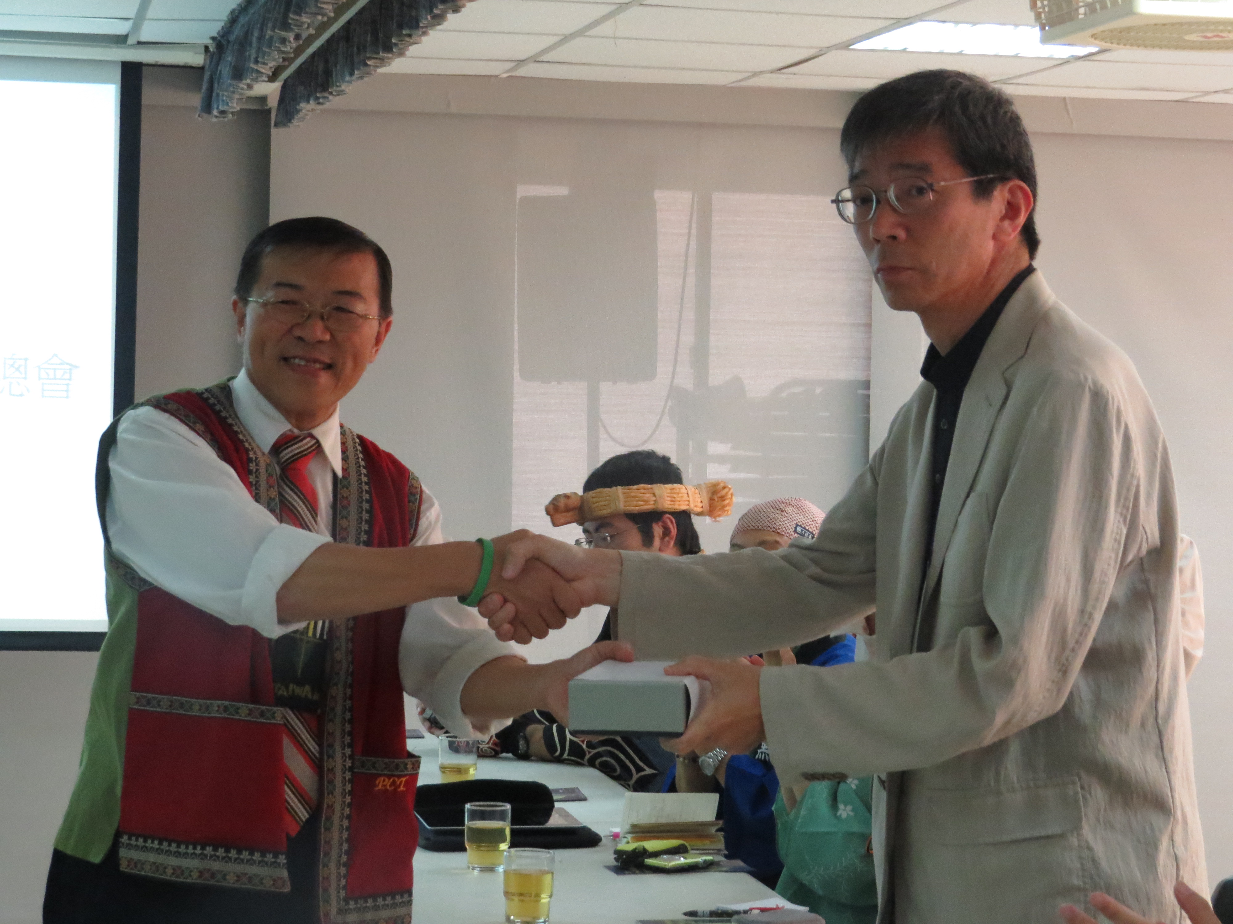 日本北海道愛努民族一行20人,11月8日上午參訪PCT,向台灣原住民學習,從文化中找回自己的根。日本愛努族的到訪,由總會原宣幹事歐蜜‧偉浪牧師負責接待,邀請民進黨民族事務部主任馬耀‧谷木牧師分享推動原住民運動的歷程。前總會助理總幹事星‧歐拉姆牧師還特別遠從花蓮來迎接老朋友。總會助理總幹事鄭英兒牧師及’Eling Tjaljimaraw也代表總會致贈禮物及祝禱。 與自然和諧共生的愛努族 愛努族居住在庫頁島、北海道和千島群島等地,崇尚人類與自然和諧共生,在和人與俄羅斯人居住之前,就擁有自己的語言及文化。18世紀末,德川幕府實行同化政策,要求愛努人改變風俗習慣。明治維新後,大舉進行北海道開墾,愛努族居住空間被剝奪,文化傳統及經濟活動亦遭禁止,目前僅有少數人會說母語。日本戰後一直以單一民族國家自居,直到1986年都否認有愛努族的存在。 愛努族為了提高地位與確立民族的自尊,於1946年成立了北海道愛努協會。1984年,愛努協會開始展開運動要求廢止「北海道舊土人保護法」與制定以廢除歧視,經濟上的自立,獲得政治上的權利為主要內容的新法律。於1997年終於廢止了「北海道舊土人保護法」而制定了「愛努文化振興法」。  與日本和人同化 愛努族因為與日本人通婚多年及被同化,純愛努族已經消失,再加上日本大和民族對原住民的種族歧視及污名化,很多愛努人都隱藏他們自己的族群特性,或者根本不知道自己的根源。 日本函館市NPO法人「道南マウコピリカの会」加藤敬人理事長,多年來致力於恢復愛努族的尊嚴、社會地位及文化保存、傳承及發展,並努力和日本政府對話,爭取愛努族的權益。 加藤敬人理事長說他是混血的愛努族。1954年出生於日本北海道,母親是愛努人,父親是和人。因為怕被社會歧視,母親一直隱藏自己的身份,後來被公婆發現,而被迫離婚。加藤敬人從小就過著一般日本人的生活,在學校的歷史課本中,從來沒有教有關愛努族的歷史。直到成年他才開始努力追尋文化的根。 2013年4月28日,加藤敬人理事長與族人在日本北海道函館機場舉行愛努民族的傳統儀式「カムイノミ」。身著族服,約十位祭司圍坐,以愛努語向神祈禱。從受害者的立場,以象徵性的行動,與日本政府和解,寬恕和人過去對愛努族的傷害。最近,加藤敬人受到日本政府委託,正積極與法國美術館聯絡,希望將十一幅愛努族的畫作,爭取到日本展覽。