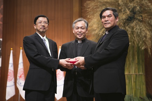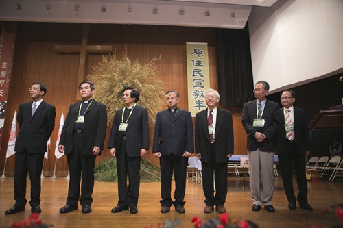 許榮豐牧師與第59屆新任總會幹部:議長羅仁貴牧師、副議長鄭文仁牧師、書記舒度‧大達牧師、副書記陳明志牧師、會計蔡裕明長老(自左至右)