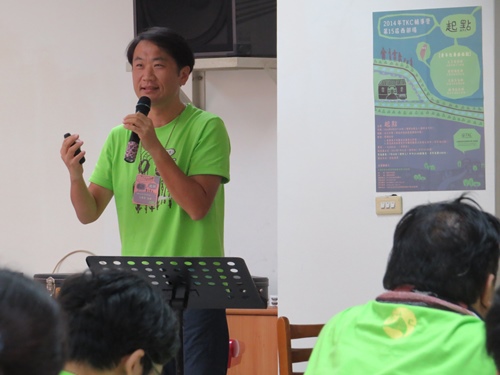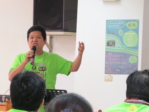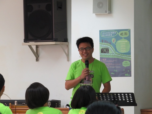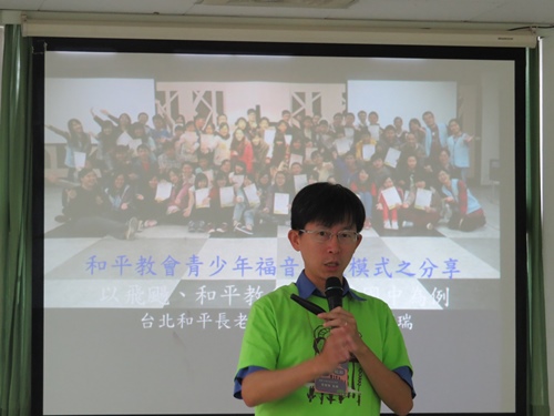 七星中會和平教會青年牧師曾昭瑞(林佳靜攝) 天龍國的青少年牧養之道 在都市大型教會牧會的七星中會和平教會青年牧師曾昭瑞坦言,在天龍國天龍區的天龍里牧養天龍人其實並不容易,尤其是在號稱「天國之路」的新生南路上,各大教會競爭非常激烈,不能再依靠傳統的方式「亂槍打鳥」的傳福音。曾昭瑞認為,長老教會不該只在教會內部運轉,宣教事工要懂得結合「社會力」,才能收事半功倍之效。譬如,八八風災時,和平長老教會就直接到網路上的BBS招募青年志工,沒想到動員400人次南下參與救災,無形中也見證了長老教會關心社會的信仰精神。 和平長老教會舉辦暑期營會,教會青年就與福音朋友一起預備,以全部的時間接觸福音朋友,和他們建立關係。由基督徒大學生訓練非基督徒的國、高中生去服務,然後變成基督徒。曾昭瑞說,傳福音不一定要幫助別人,才能傳給人,也可以學耶穌先找別人幫忙(如到撒該家裡住或是向井邊的撒瑪利亞婦人要水喝),然後再將福音傳給他。傳福音的對象也不用跑到國外去,或是只傳給偏遠、弱勢的人,傳福音給鄰舍也是很重要的宣教工作。 最後總會傳道委員會傳道幹事蔡南信牧師以耶穌的命令(馬太福音28章19-20節),分享主耶穌的宣教策略,介紹一領一新倍加的門徒培育教材,勉勵輔導們成為青少年生命的陪伴者。前台灣基督長老教會總會助理總幹事、台北中會士林教會許承道牧師也詳細介紹台灣基督長老教會總會的組織架構,使輔導以身為長老教會的一份子為榮。