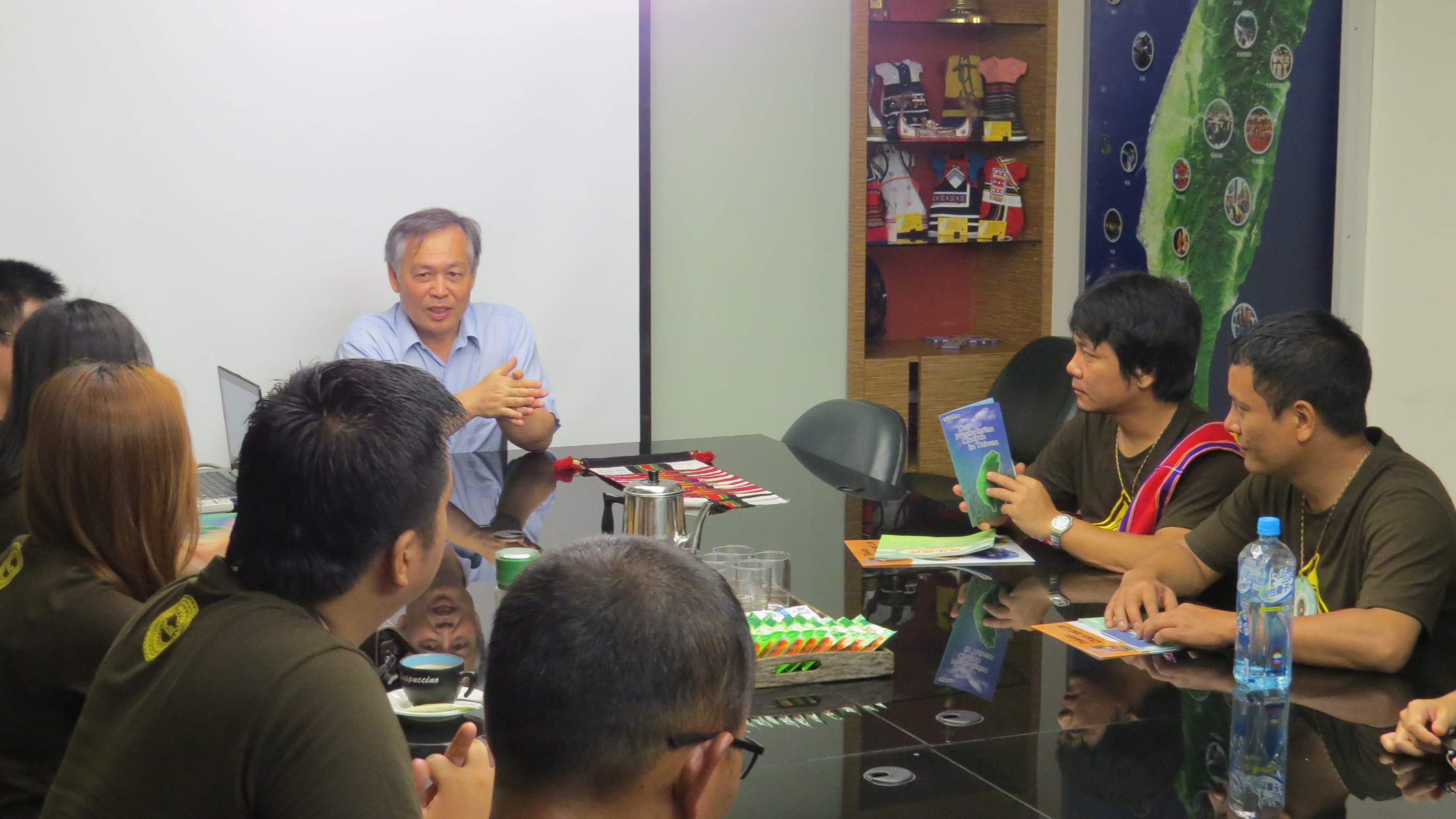 總會總幹事林芳仲牧師向4位印度米佐蘭青年說明,台灣又稱福爾摩沙的由來,還提到二次大戰後,1956年1月1日,盧主義等五位台灣留學生在費城成立「3F(Formosans' Free Formosa)」組織,首開北美洲台灣獨立運動的先河。 林芳仲牧師表示,每主日長老教會同時有18種語言聚會,他很期待教會青年能夠從不同族群學習語言文化,包括向米佐蘭學習,領受上帝豐盛的祝福。總會青年事工委員會幹事鄭君平牧師也詳細介紹PCT的組織架構、歷史及青年事工。 總會普世青年事工助理林宛柔表示,因為4位米佐蘭青年來自內陸,此次EYEP特別安排他們體驗台灣東部的海洋文化。從7月1日至20日,他們會先參加「2015我愛台灣宣教營」(ILT)的行前會,與各國青年交流;然後轉往台東,造訪三仙台、各個漁港碼頭,體驗海洋文化;再前往屏東了解排灣中會青年部組織,並參加排青的社青讀經營。12日再到高雄旗後教會參加設教150週年慶典;緊接著參觀台南神學院,及受邀前往嘉義大專學生中心了解大專宣教事工,最後再參加ILT行後會,分享此行的收穫。