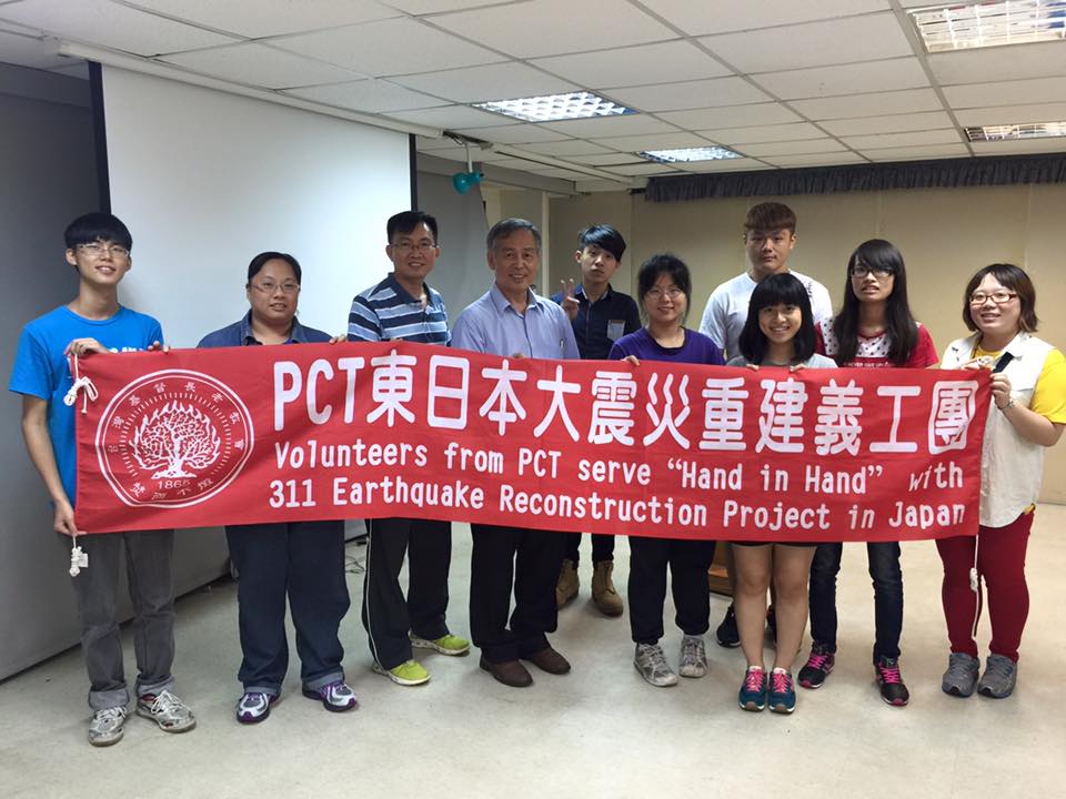 日本基督教團副議長佐佐木美知夫牧師代表向PCT義工團致謝(總會教社提供) 因為今年是舉辦東日本災後重建義工團的最後一年。7月8日,日本基督教團副議長佐佐木美知夫牧師、東北教區ヤンターエマオ館長松本芳哉、災害對策本部幹事飯島信牧師、翻譯入江玲子小姐、エマオ支援中心まさし牧師及工作團隊,特別招待第一梯次的義工團員享用晚餐,感謝PCT義工們以奉獻服事的精神,為災區服務。其中PCT差派的全彩雲宣教師及玉山神學院2位實習生也在當中。義工團也致贈台灣伴手禮,感謝日本基督教團的招待。 高雄中會苓雅教會鄭明智牧師得知自己教會的青年有報名參加義工團,也促使他想要試看看。第二梯次的義工團,將由他負責領隊。請為義工團此行平安順利代禱。 |