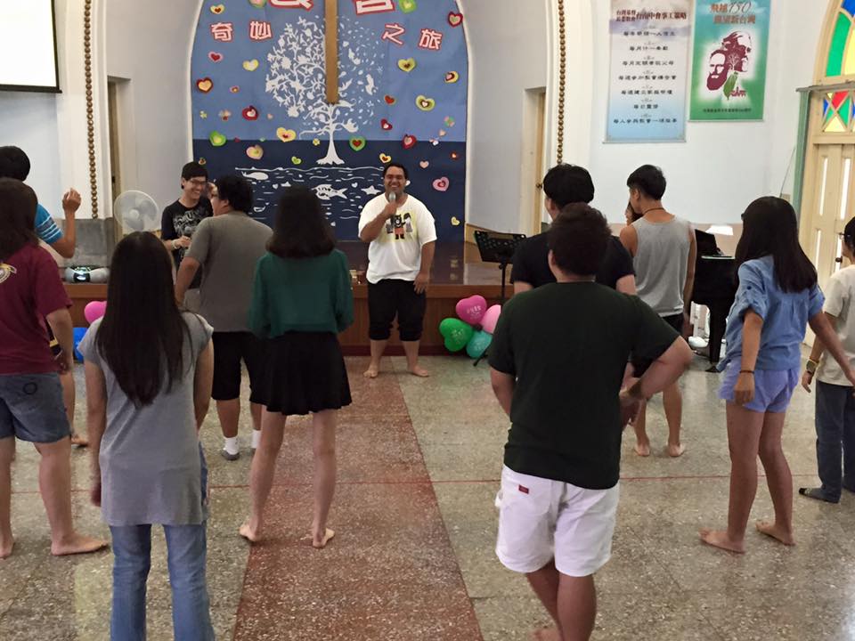 ILT青年到善化教會服事(總會青年提供) 第二站和第三站是彰化教會及嘉義中會的祥和教會,ILT青年前去支援青少年營會及兒童夏令營。鄭牧師發現,雖然ILT青年和小朋友的語言不通,但透過表情和肢體語言,卻能互動的非常好。 在善化教會服事的外籍青年,在兒童營教唱自己國家的詩歌,小朋友學得很快,日文、韓文、馬來西亞及庫克群島的歌曲一下子就朗朗上口。他們每天也要負責中餐,輪流煮自己國家的料理。