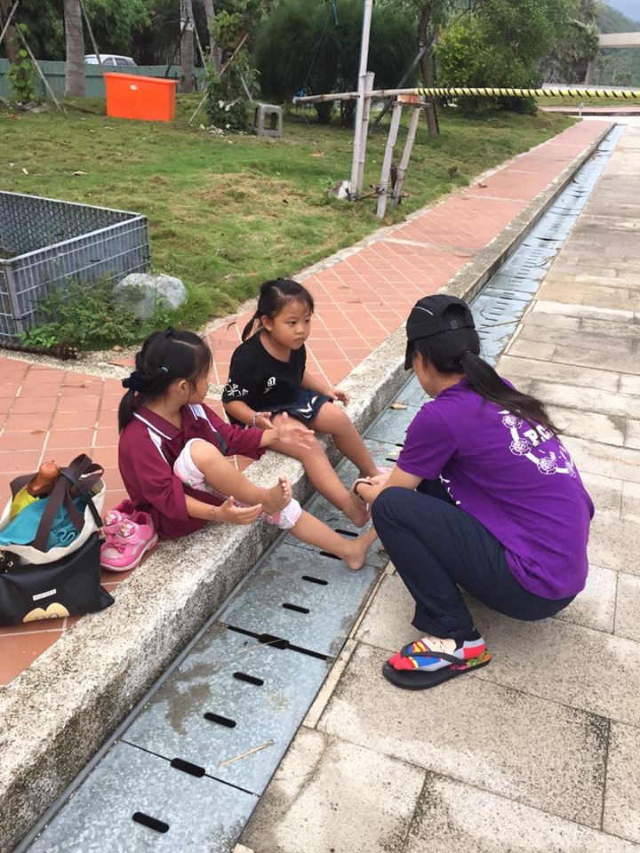 旮仩老師為孩子們擦拭腳底板 |