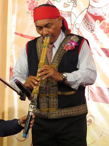 排灣中會高文生長老表演鼻笛