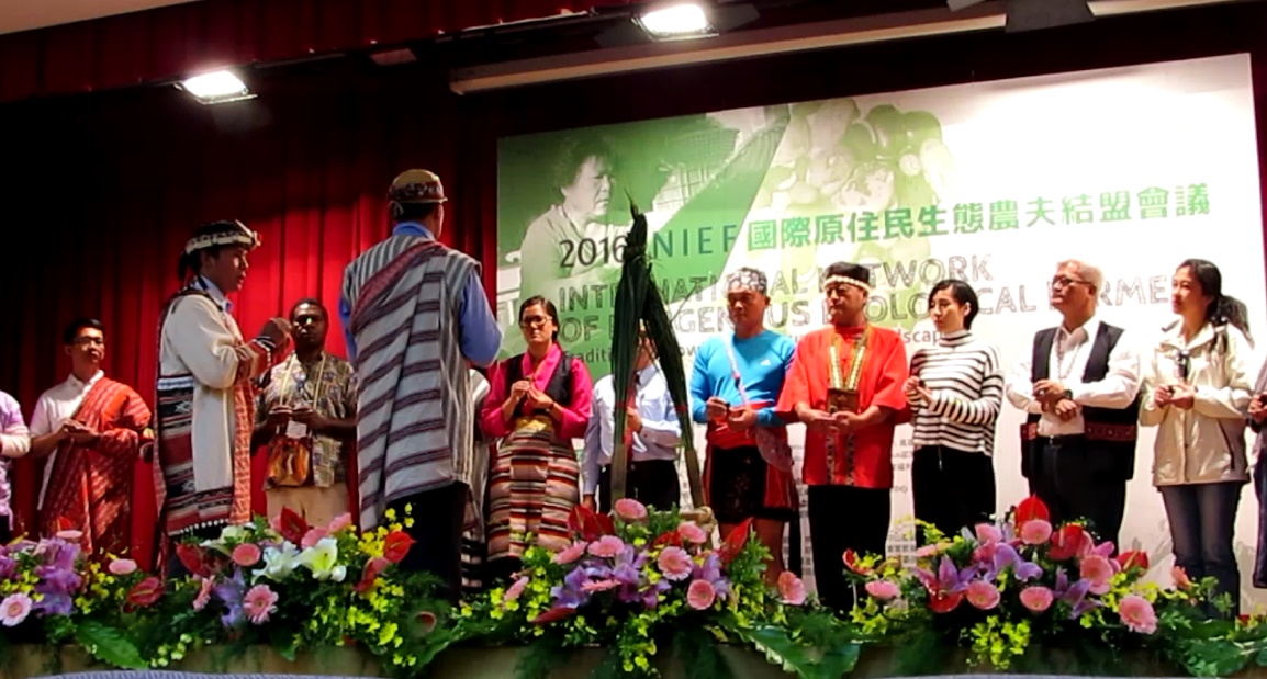 國際原住民生態農夫在司馬庫斯的結盟儀式(林佳靜攝影) 2016INIEF國際原住民生態農夫台灣宣言 , 由澳洲農夫Ms. Teresa Alic代表宣讀(林佳靜攝影) 國際原住民生態農夫在台北的結盟儀式(林佳靜攝影)