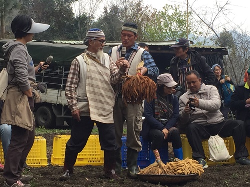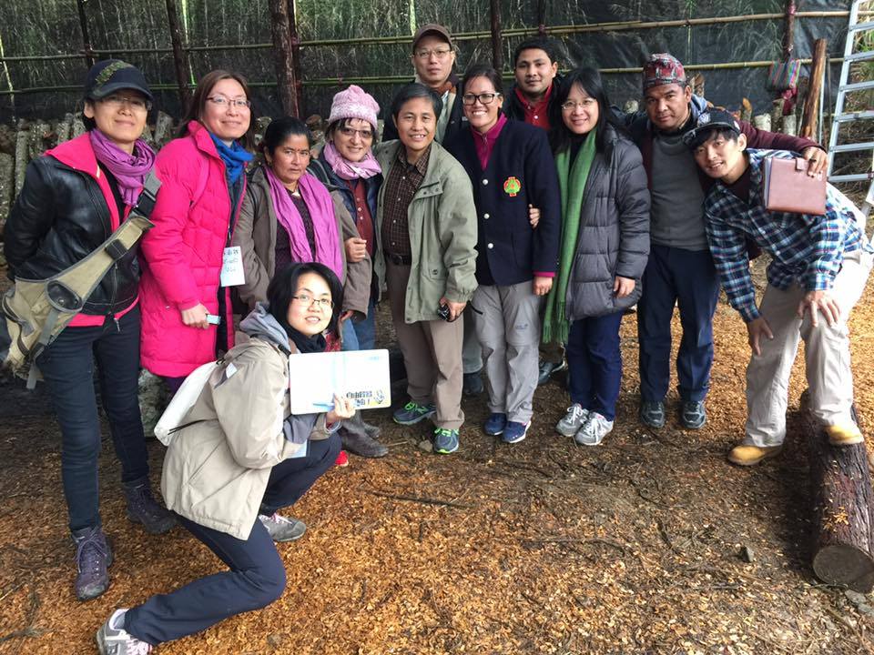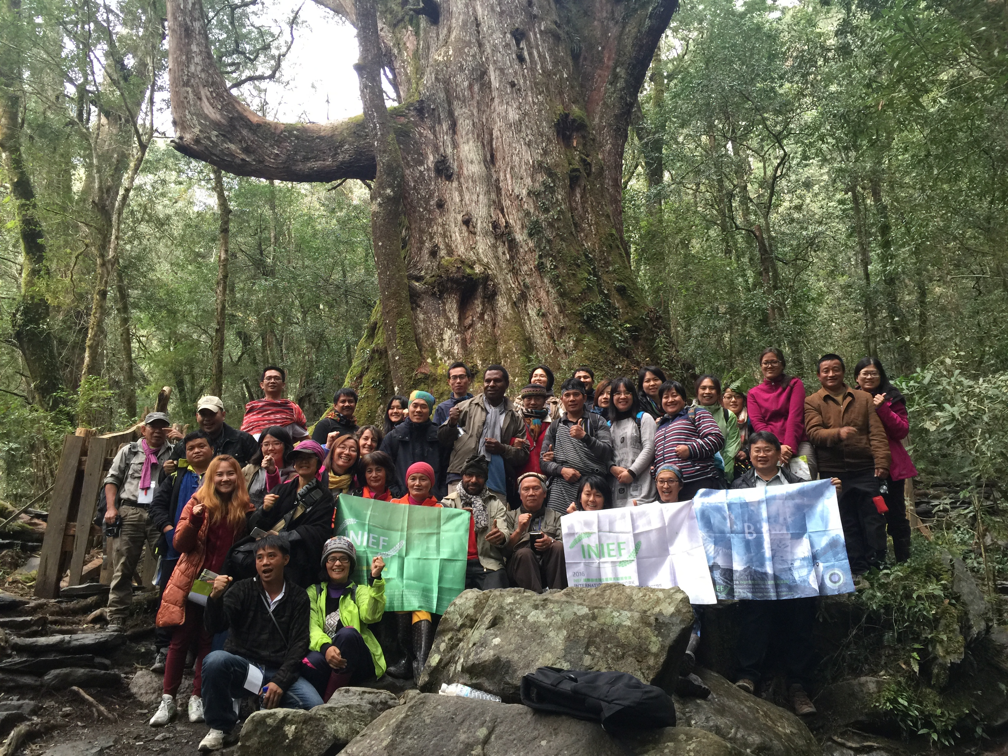 在司馬庫斯巨大的檜木林中合影 這場首次在台灣舉行的國際農夫草根結盟行動,源起於2014年5月為因應氣候變遷在不丹舉行的「國際高山社群結盟交流會議」。由臺北醫學大學醫學人文研究所所長林益仁帶隊,讓台灣的原住民經驗有機會與國際社會分享經驗,參加者包括鎮西堡部落的Atung Yupas阿棟‧優帕司牧師、泰雅族婦女Yapit Tali亞弼‧達利、卡那卡那富族達卡努瓦部落阿布娪•卡阿斐依亞那…等人。在台灣團隊的優異表現下,爭取到2016年在台灣的主辦權。