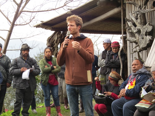 鎮西堡部落的阿棟‧優帕司牧師曾參與2014年不丹會議 然而,將近四百萬的龐大經費是個難題。2014年的聖誕節,林益仁與不丹會議執行長Frederik等人拜訪尖石後山,獲得新竹尖石後山B’bu區會牧長的大力支持,願意提供與會人員的吃住,並透過台灣基督長老教會總會教會與社會委員會的部分經費補助,及協助解決尼泊爾團隊來台的簽證問題,終於成行。 林益仁所長特別引進「走動式工作坊」(walking workshop)的形式,到各部落實地參訪交流,由組織工作者妥善安排議程與議題,配合語言的翻譯,將各族母語轉換成英文及中文,讓各國原住民農夫與耆老能夠直接分享在地知識。美食饗宴(Food Festival)是走動式工作坊的另一項創意,由各國團隊準備該國部落的特色風味餐,在分享中建立友誼。 在簽署共同宣言之前,過去兩週代表團已經走訪了台灣的都蘭、來吉、那瑪夏與尖石等部落,了解台灣目前部落農業實際的運作情況、困境,並交換各國的經驗。總會原宣幹事歐蜜‧偉浪牧師也在其中分享泰雅族傳統智慧與政府相關政策問題。