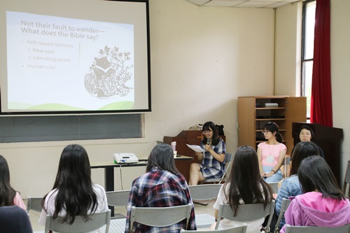 張洵宜傳道帶領學員探討台灣的流浪動物議題(林佳靜攝) 中興長青畢契、普林斯頓神學院神學碩士,專職翻譯的張洵宜傳道,近年致力於動物神學的研究。她向大家講述台灣流浪動物的現況,並列舉人們棄養寵物的原因,及流浪動物所帶來的交通混亂、噪音,以及環境衛生等問題。張洵宜認為,「流浪不是他們的錯!」,政府對於流浪動物的收容,應有充分的預算及配套措施。國人也要建立「領養而不棄養」的觀念。