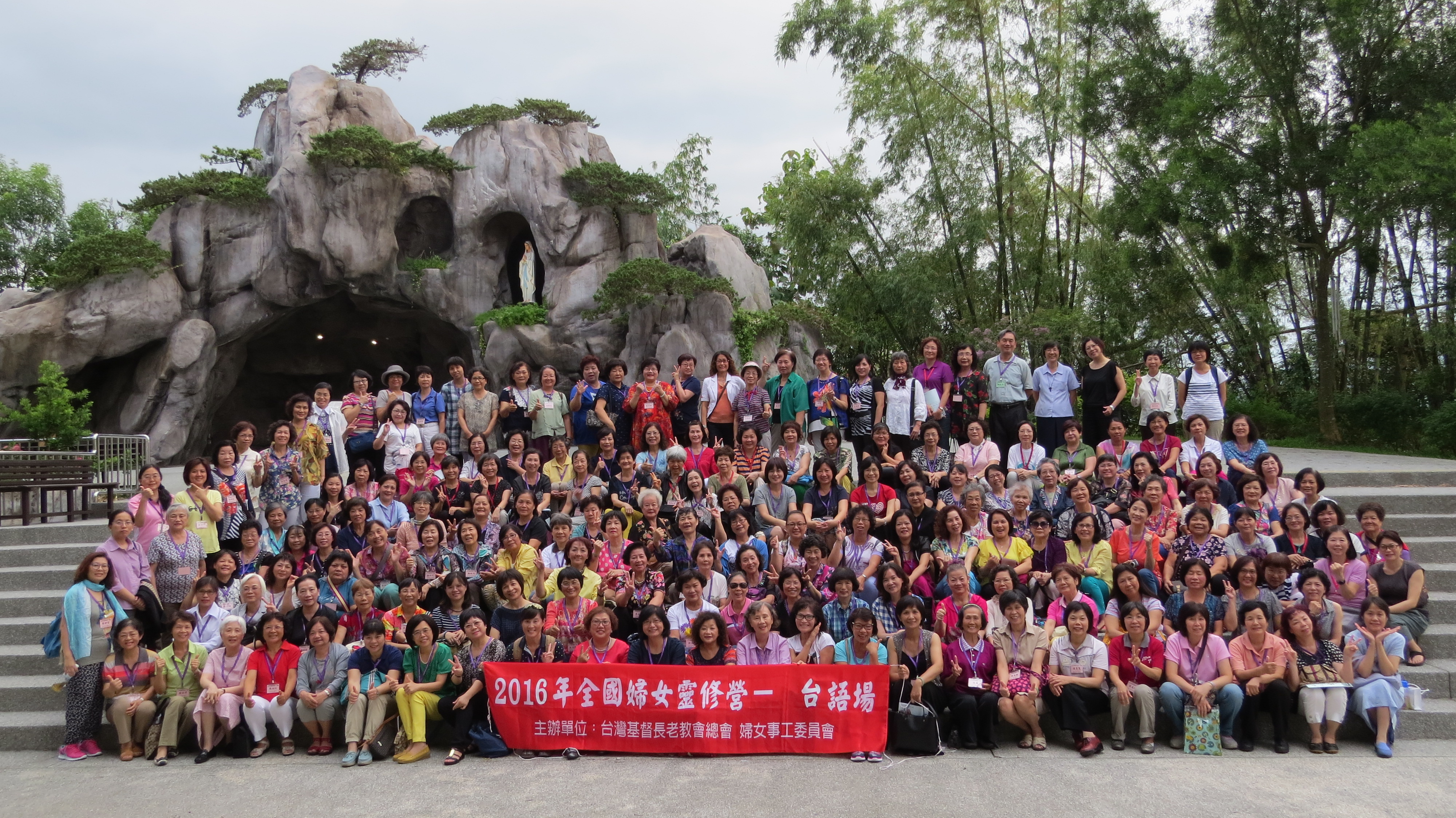 2016全國婦女靈修營台語場在高雄真福山社福文教中心舉行(林佳靜攝) 2016全國婦女靈修營台語場7月25-27日在高雄真福山社福文教中心舉行,有來自各平地中會婦女事工部178位婦女參加。本屆靈修營以「沐浴在主愛中」為主題,邀請天主教聖功修女會李純娟修女帶領默觀祈禱(田亞蓮修女代)、郭青青修女教導夢的解析與想像及遇見真我,並由心潔靈修中心鄭哲宇牧師、李金幸牧師、潘馨逸老師所組成的音樂團隊以泰澤祈禱方式主領早禱及晚禱。