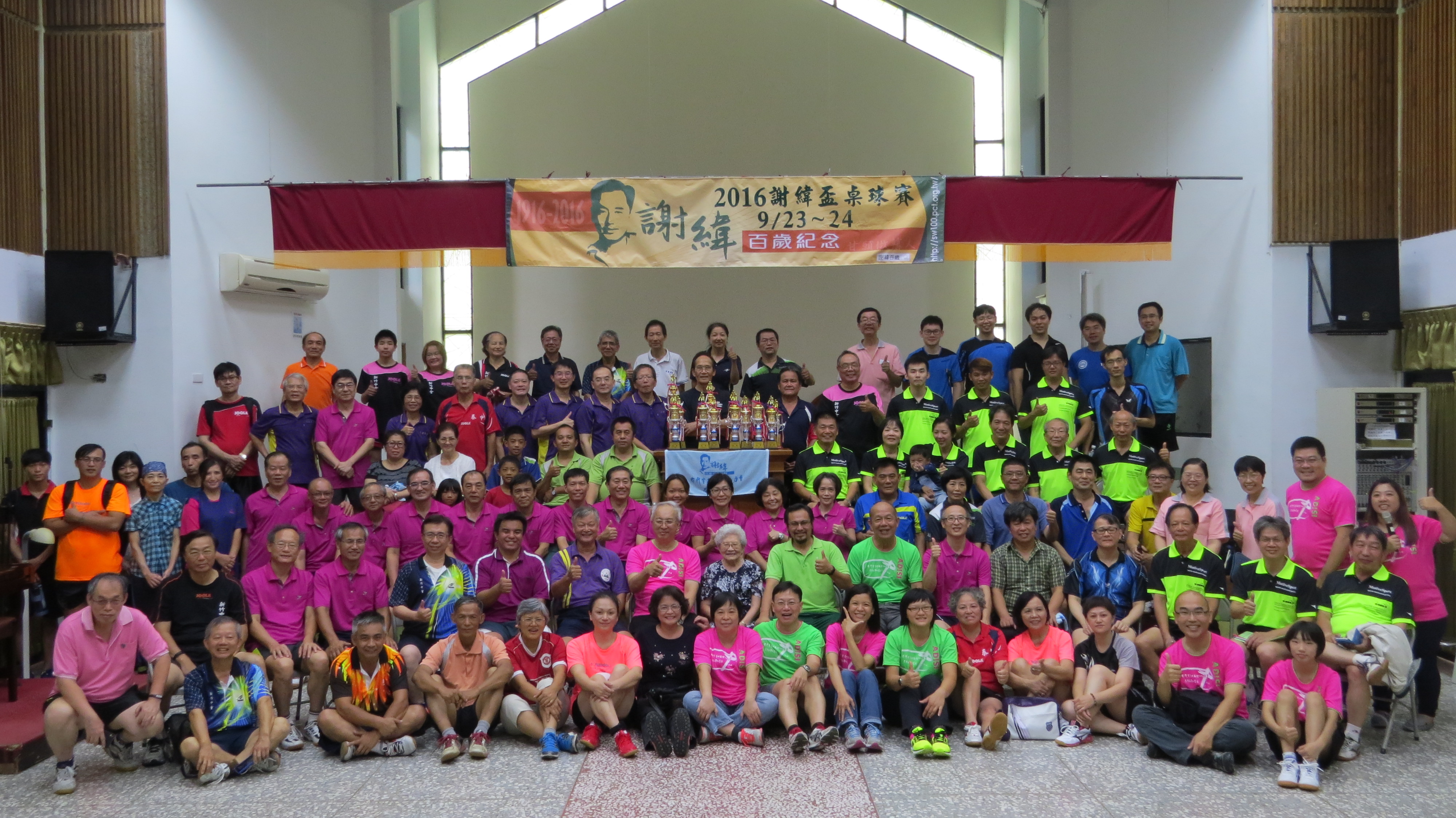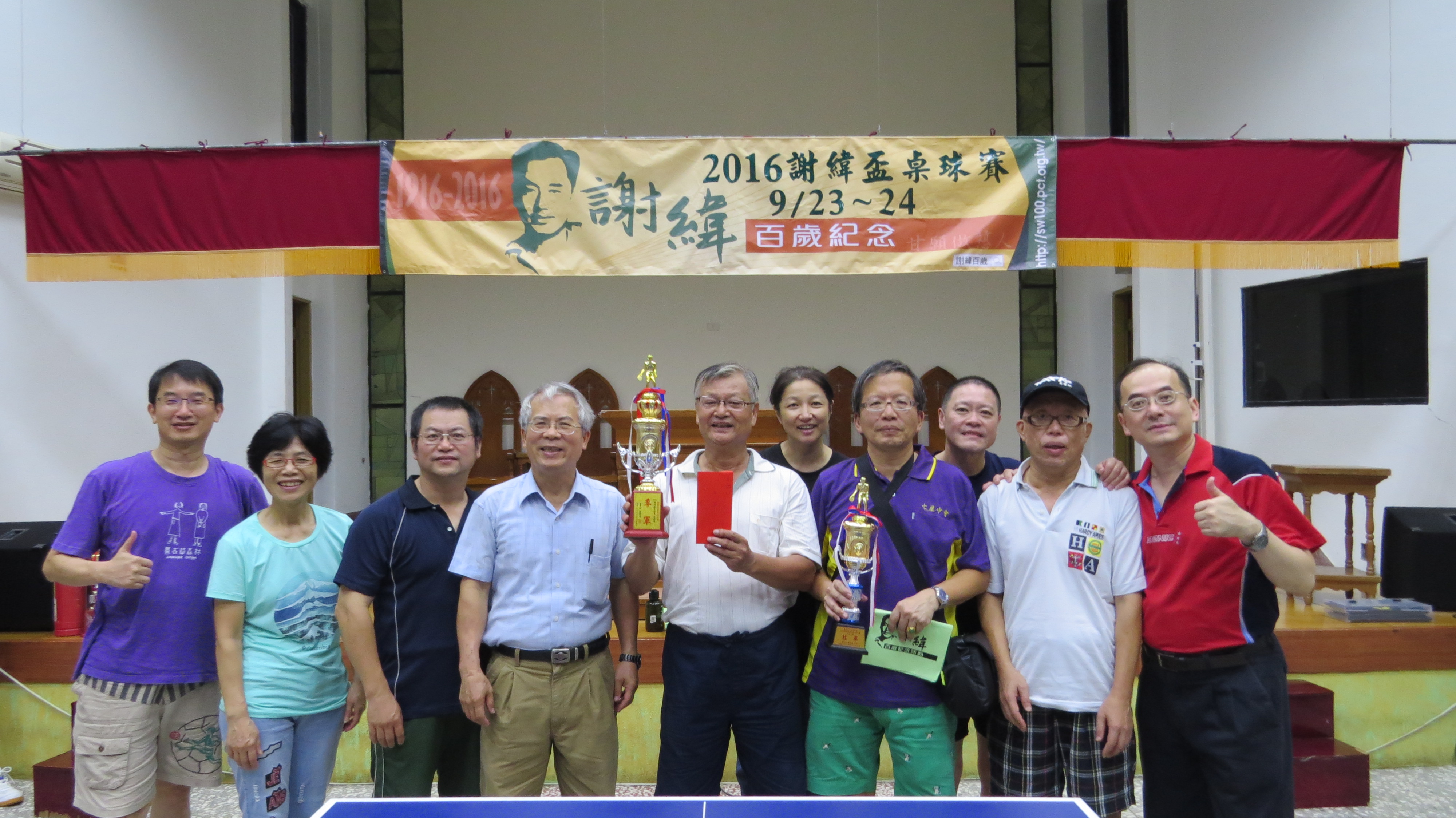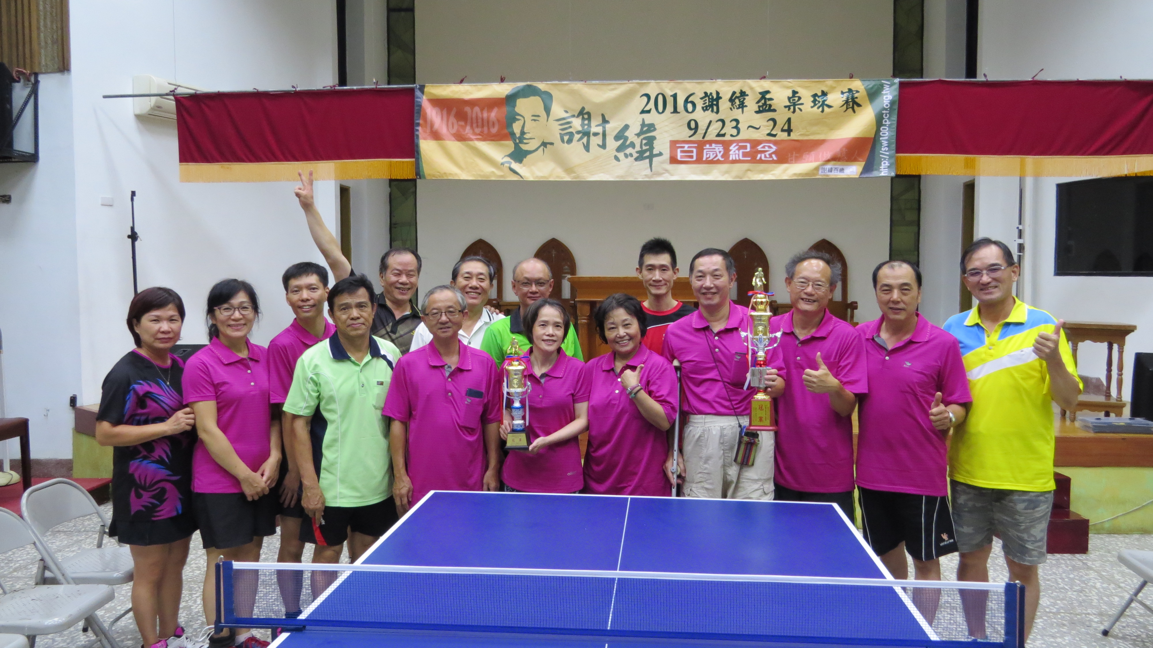 為紀念謝緯牧師百歲誕辰,2016年謝緯盃桌球賽再度開打!(林佳靜攝) 闊別三年,2016年謝緯盃桌球賽再度開打!為紀念謝緯牧師百歲誕辰,謝緯紀念營地董事會及同工努力籌募經費,於9月23、24日舉辦「2016謝緯盃桌球賽」,鼓勵各中區會牧長以球會友,承接謝緯牧師的精神,在這個瞬息萬變的世代,隨機應變,勇敢迎接挑戰!