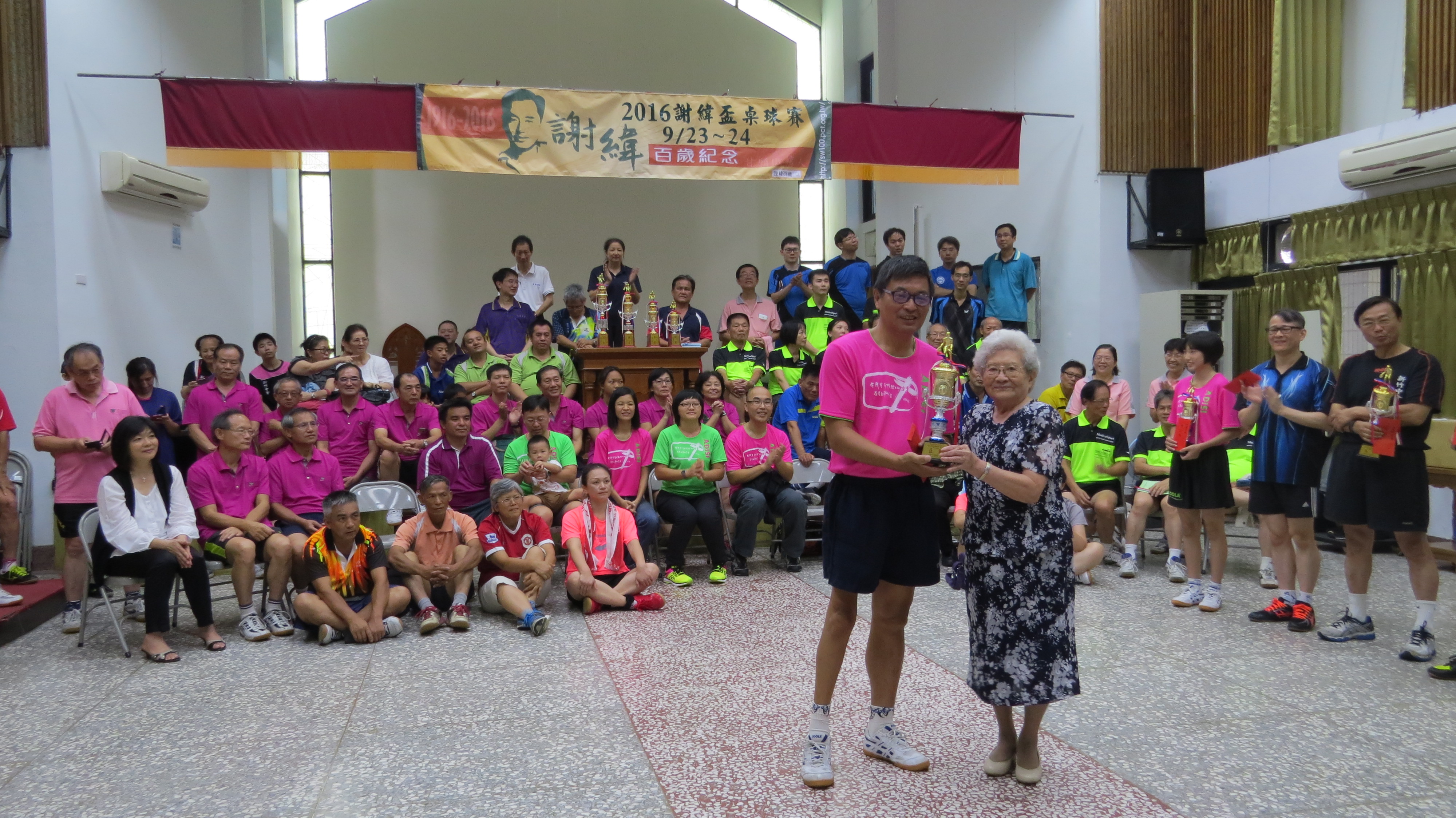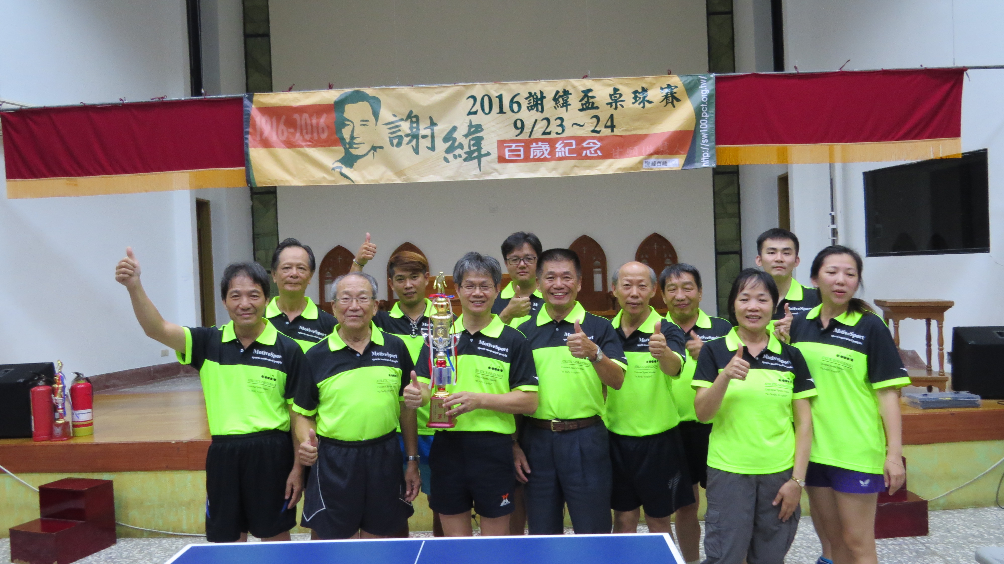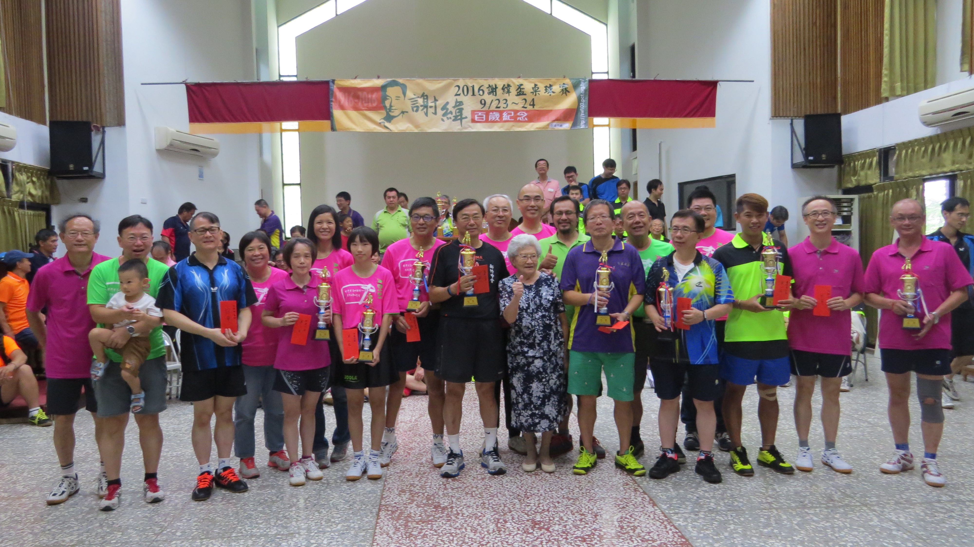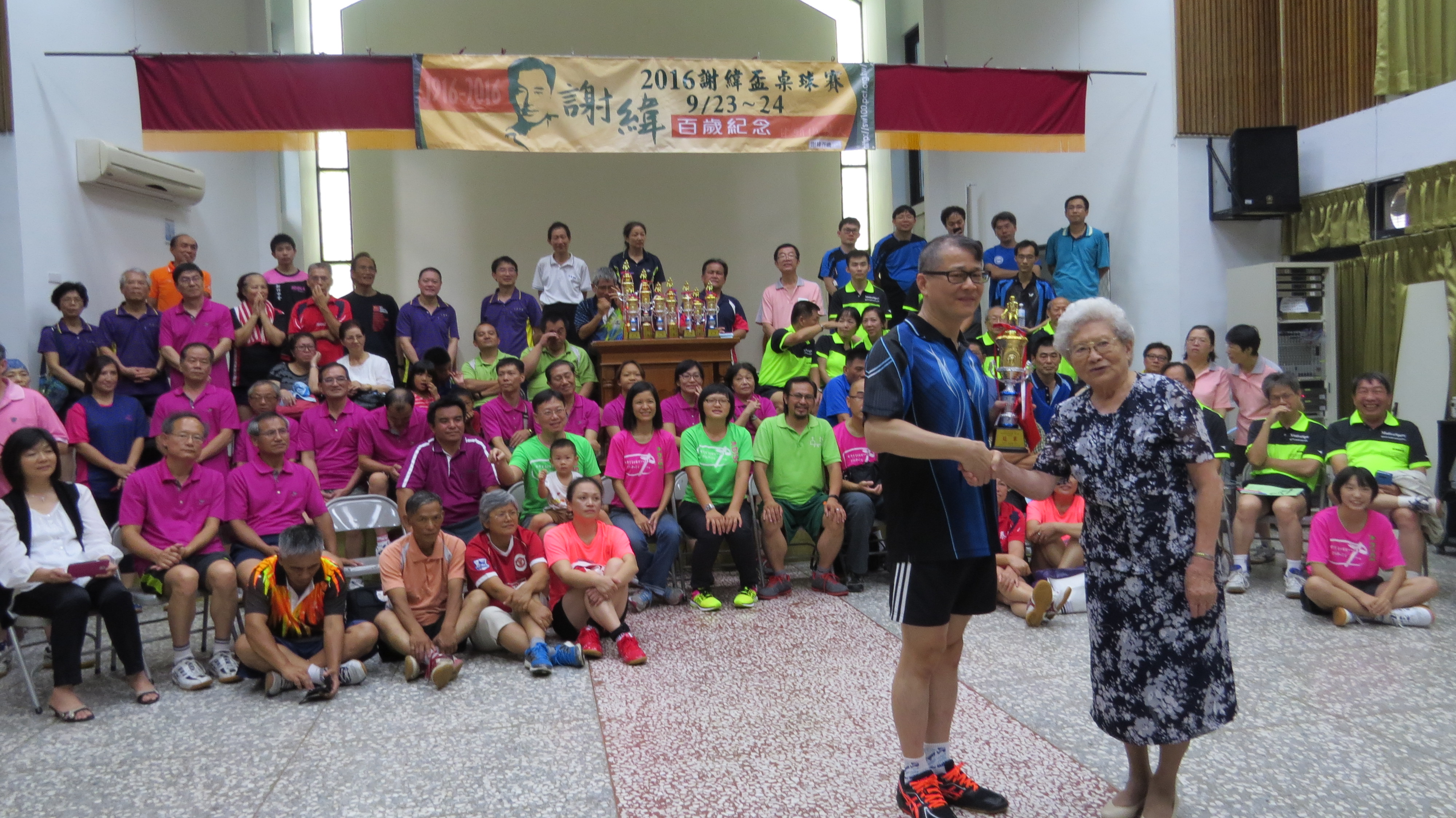 為紀念謝緯牧師百歲誕辰,2016年謝緯盃桌球賽再度開打!(林佳靜攝) 闊別三年,2016年謝緯盃桌球賽再度開打!為紀念謝緯牧師百歲誕辰,謝緯紀念營地董事會及同工努力籌募經費,於9月23、24日舉辦「2016謝緯盃桌球賽」,鼓勵各中區會牧長以球會友,承接謝緯牧師的精神,在這個瞬息萬變的世代,隨機應變,勇敢迎接挑戰!