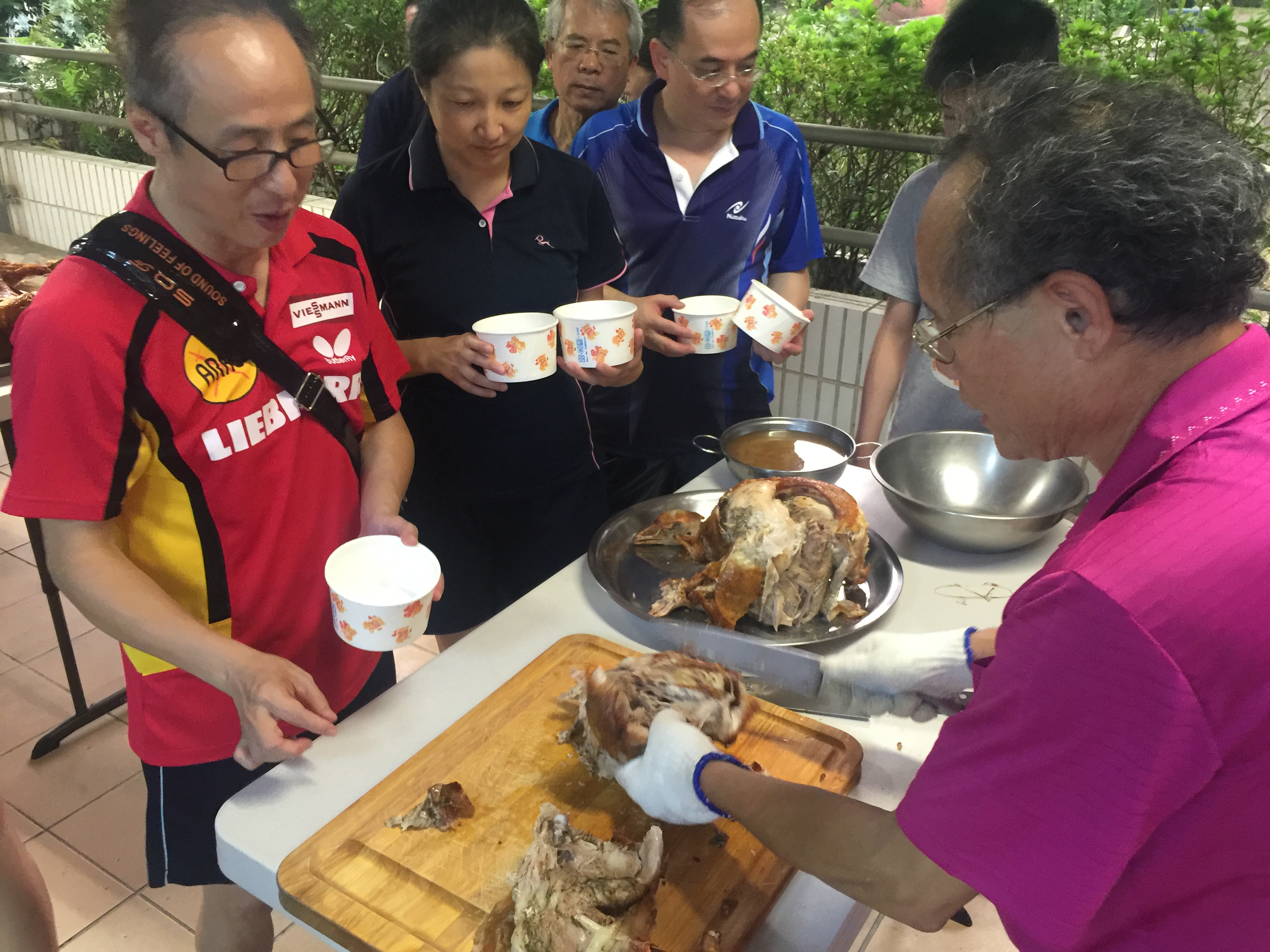 新竹中會總幹事卓宗仁牧師與嘉義博愛教會的黃璨徵牧師打了5局Duce 個人賽牧師、傳道師長青組,同樣打得難分難捨。從初中就開始打桌球的新竹中會竹南教會朱錫東牧師,每個月第4個禮拜都會和竹中的牧者相約打球。此次遇到曾是區運選手的彰化教會林家宏牧師,令他印象深刻,他稱讚林家宏牧師是「可敬的對手」,很會分析球路。同樣打得筋疲力竭的新竹中會總幹事卓宗仁牧師則興奮地說,遇到嘉義博愛教會的黃璨徵牧師,難得打了5局都是Duce(比數為10:10), 簡直是棋逢對手,讓觀眾屏氣凝神,看了一場精彩的比賽。23日晚餐,大家還一起享用林敬順牧師特地準備的烤火雞大餐,補充蛋白質和體力。