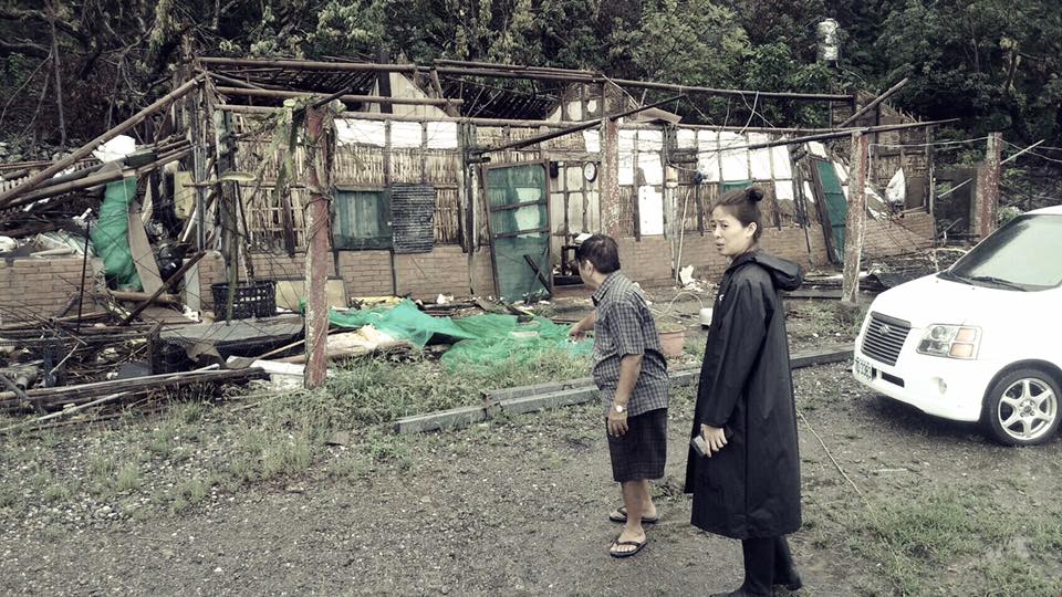 尼伯特風災後二個月,TSP團長劉妍希發現阿公住在帳棚裡, 用竹子搭建的房屋已經被風吹垮(翻攝自心愛在後花園臉書) 第一位發現阿公的是TSP團長劉妍希。尼伯特風災兩個月後,有人跟她說,在山上有位住在帳蓬裡的阿公極需要幫忙。沒想到阿公家的地址連導航系統都找不到,她就滿山遍野的尋找。她還記得,當時下著雨,天色灰暗,阿公正從帳蓬裡舀水,看到這一幕,她心裡很錯愕,「為什麼兩個月之後,還會有這樣的受災戶?」隔天她馬上帶著TSP團隊為阿公搭了一座棚,募了一個不會漏水的帳篷,這樣阿公又睡了兩個多月。 為了募款、找人重建必須花費許多時間,林偉聯牧師努力尋找替代性方案,期間拜託過立委劉櫂豪協同鄉公所尋找安置的地方,或是處理阿公的土地問題。因為阿公與哥哥共同承租國有財產局的土地,而阿公的哥哥日前過世,讓事情一波三折。在等待的過程中,有許多團體前來拜訪阿公,都是來看一看、慰問一下就走了。「一想到阿公還睡在帳蓬裡,我每天都睡不好,只要風雨太大就會很擔心。」接著又有許多颱風,她與林偉聯牧師討論想要將阿公帶回家,溝通了兩次,阿公終於點頭。一直到尤大哥出現,才決定幫阿公重建一個家。