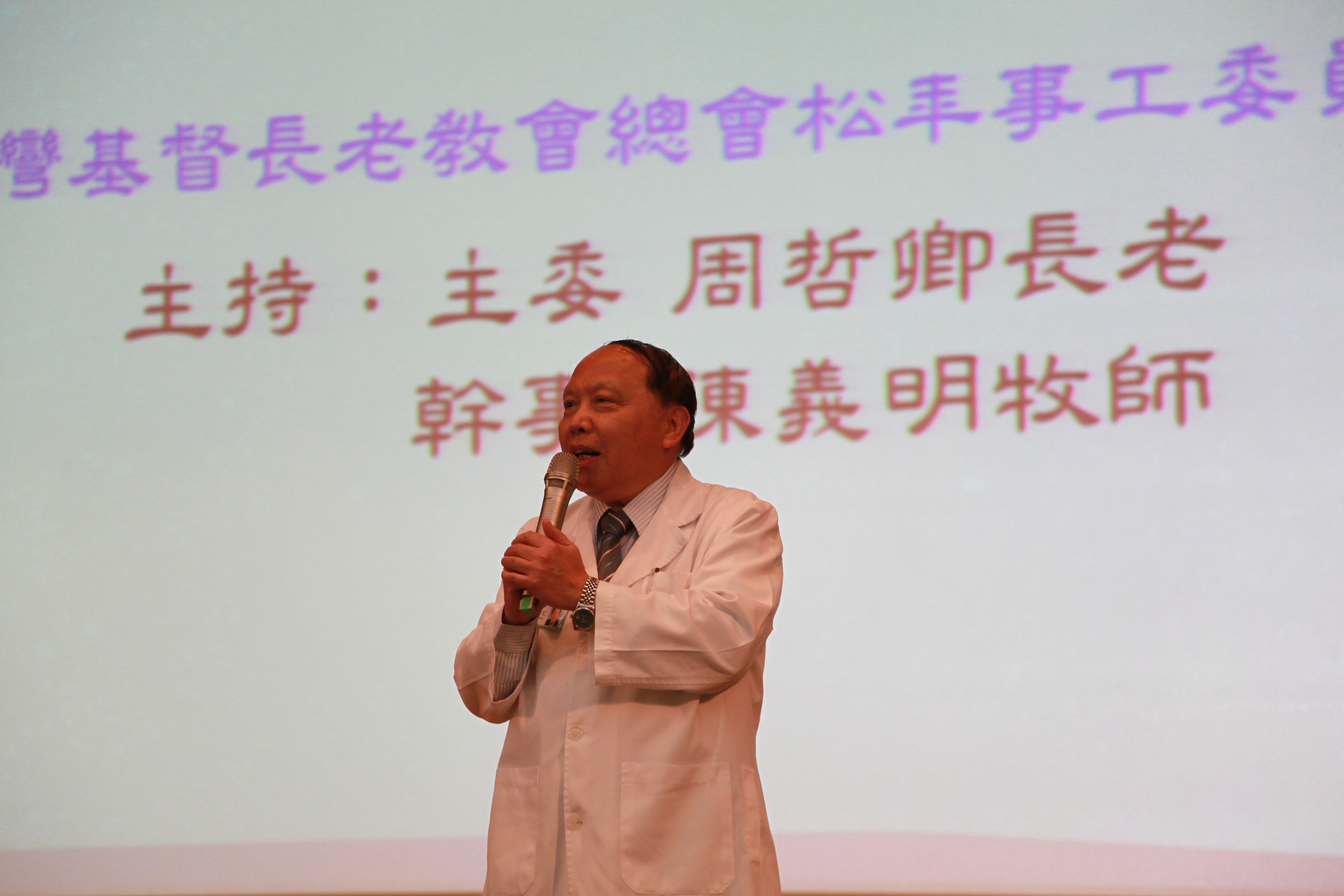 總會松年事工委員會主委周哲卿長老說明PCT的高齡關顧異象(林佳靜攝) 總會松年事工委員會主委周哲卿長老提到,PCT的高齡關顧異象,早在1984年6月21日總會就成立「松年事工委員會」,並於1989年6月創辦「松年大學」。PCT擁有學校、醫院、社福機構、安養中心等豐沛資源,以及總會、中會與地方教會的組織網絡。教會的松年團契及松年大學事工就是「健康老化」的最佳示範。