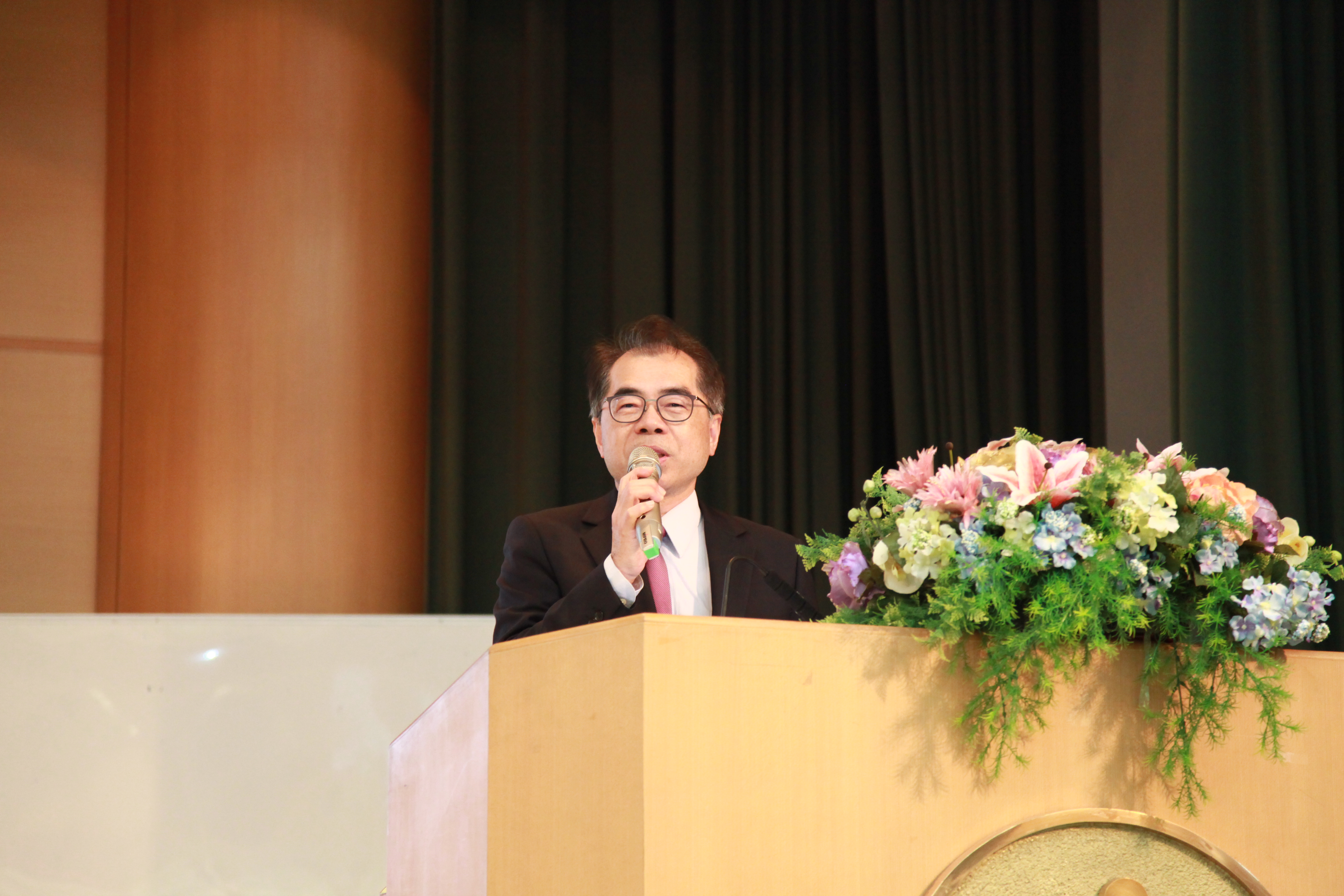 彰化基督教醫院董事長陳信良牧師致詞(林佳靜攝) 彰化基督教醫院董事長陳信良牧師致詞表示,十年前長老教會就與澎湖縣政府合作,協助照顧澎湖失智失能老人等弱勢族群,2014年5月23日揭牌啟用「台灣基督長老教會澎湖宣教中心暨澎湖縣平安馬公日間照顧中心」,證明長老教會走在時代的前端。陳信良說,推動高齡關懷事工需要有好的醫院做後盾,長老教會在北部有馬偕醫院、中部有彰化基督教醫院,南部有新樓醫院,這是需要多元服務及整合的事工,透過總會松年的推動能關懷照顧高齡長者。