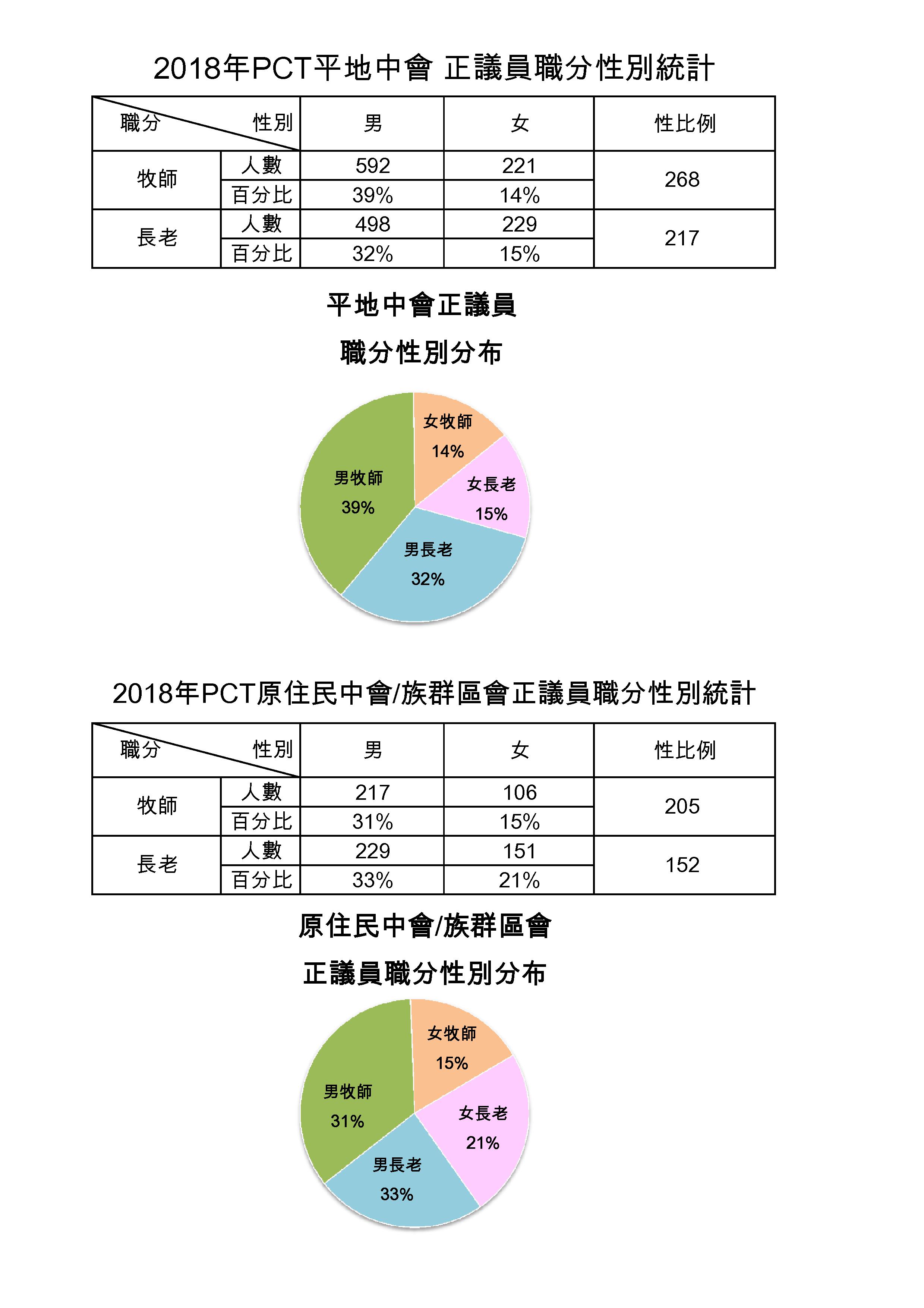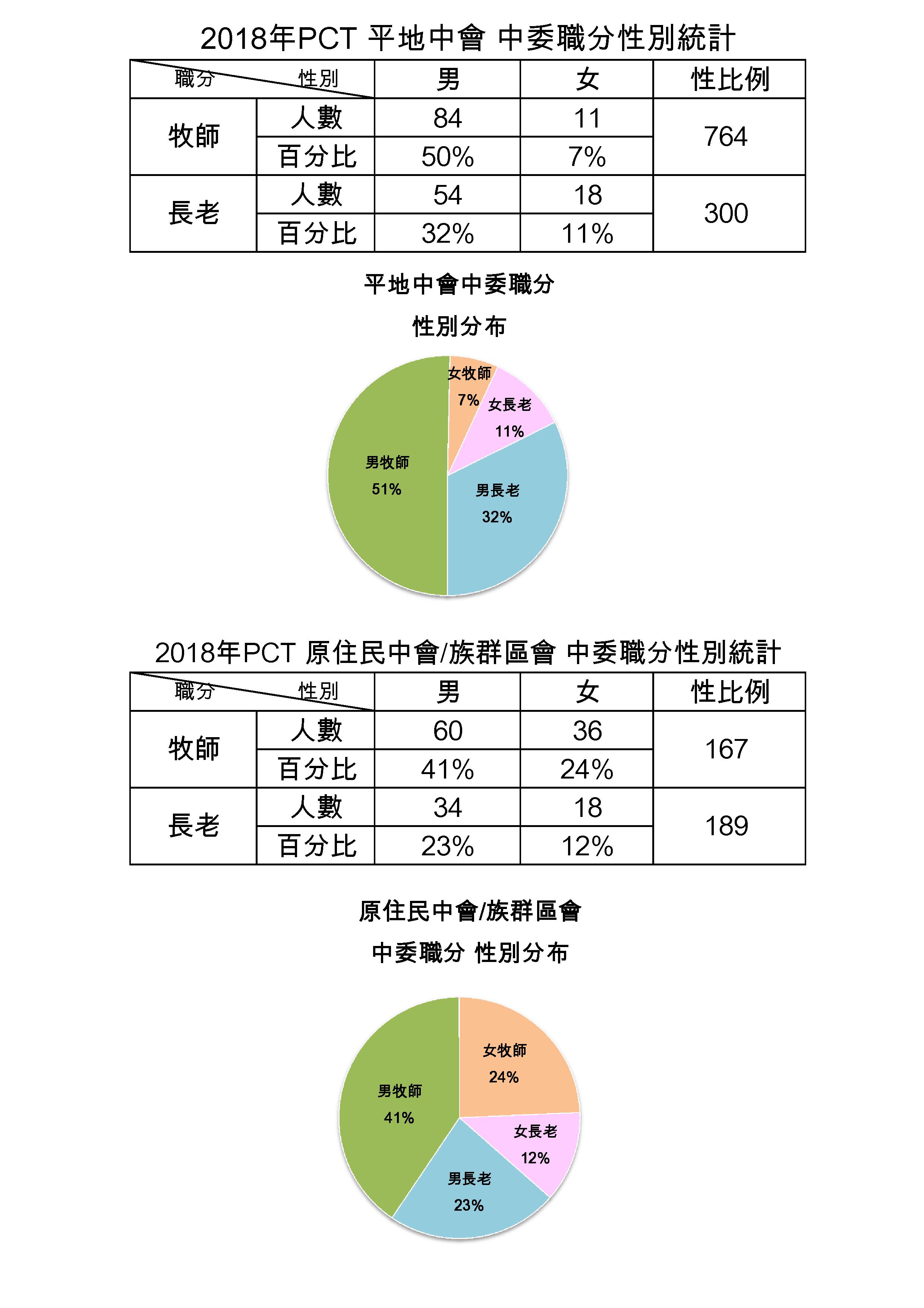 圖八、2018年PCT平地中會/原住民中會族群區會中委職分