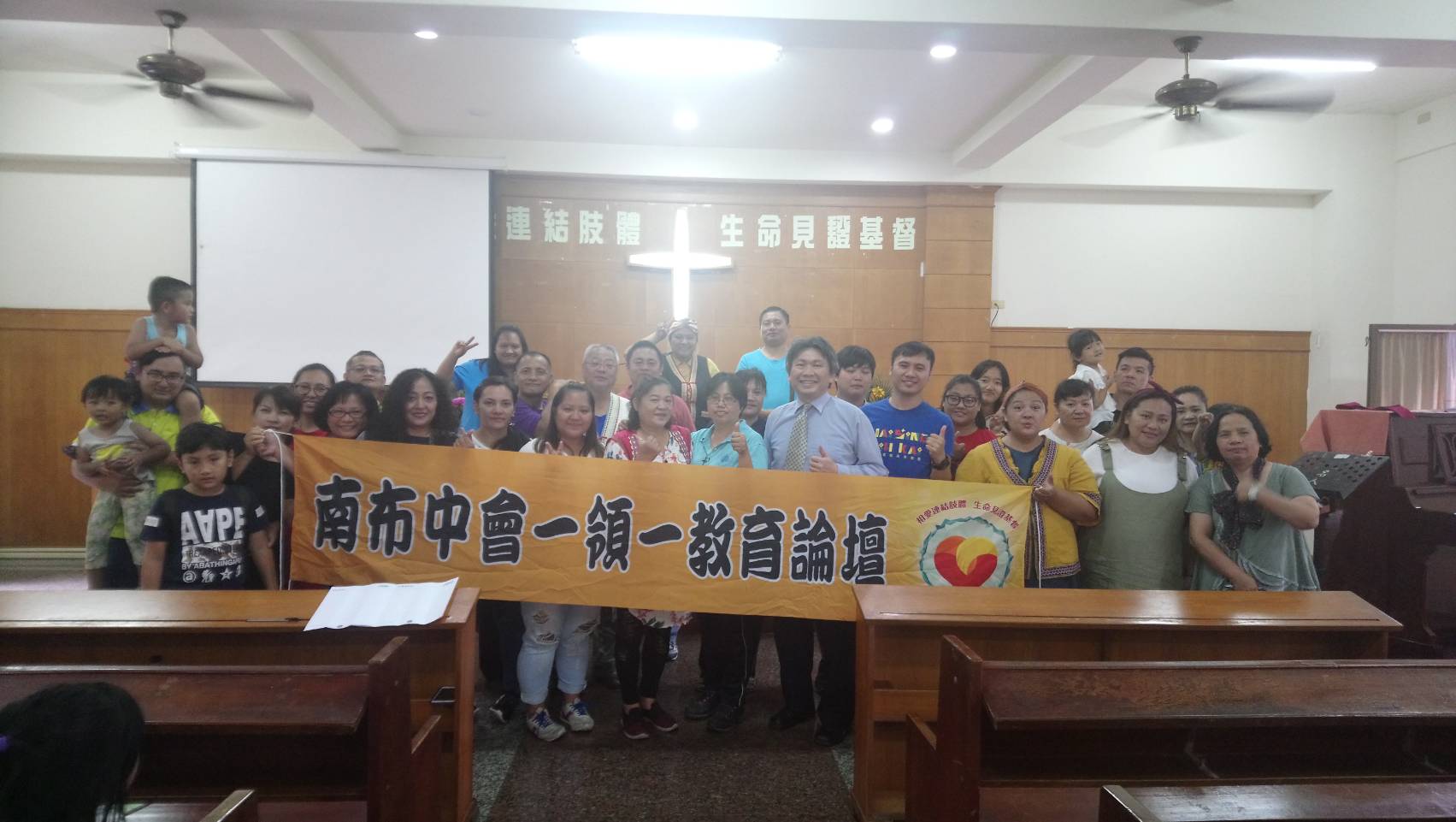 2018年7月27-28日,南布中會於建山教會舉辦「一領一教育論壇」。本次主題為「做好主日學老師的角色」。參加對象:各教會主日學校長、老師、教會牧者、幹事。主要規劃及負責執行是南布中會「一領一‧新倍加」事工小組執行長朱梅芳牧師。教育論壇內容規劃為四部分:1) 交誼晚會。2) 專題演講。3) 分組討論。4) 問題與回應。