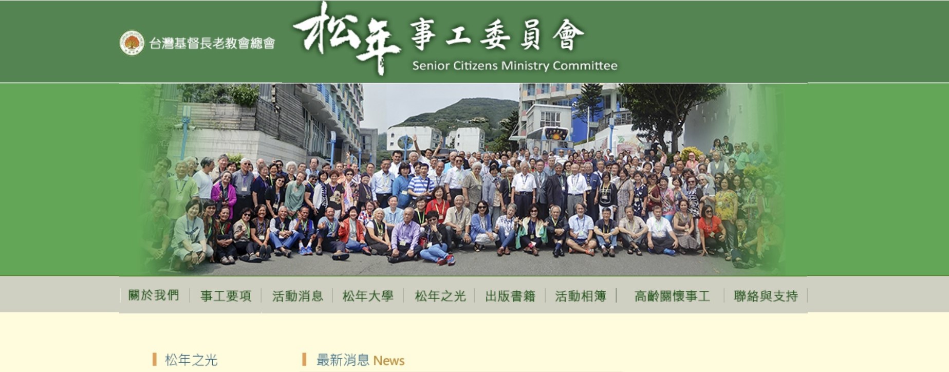 2019年6月21日是總會松年事工委員會成立 35 週年,為了回應上帝賜恩福給松年事工委員會,以及促進各中會/族群區會松年事工部之連結與交流,並在基督裡同心合一的展望未來,讓教會全體在推展松年事工時能更蒙主恩,力上加力,特別設置總會松委會網站。歡迎各界牧長、兄姊蒞臨點閱與指教。