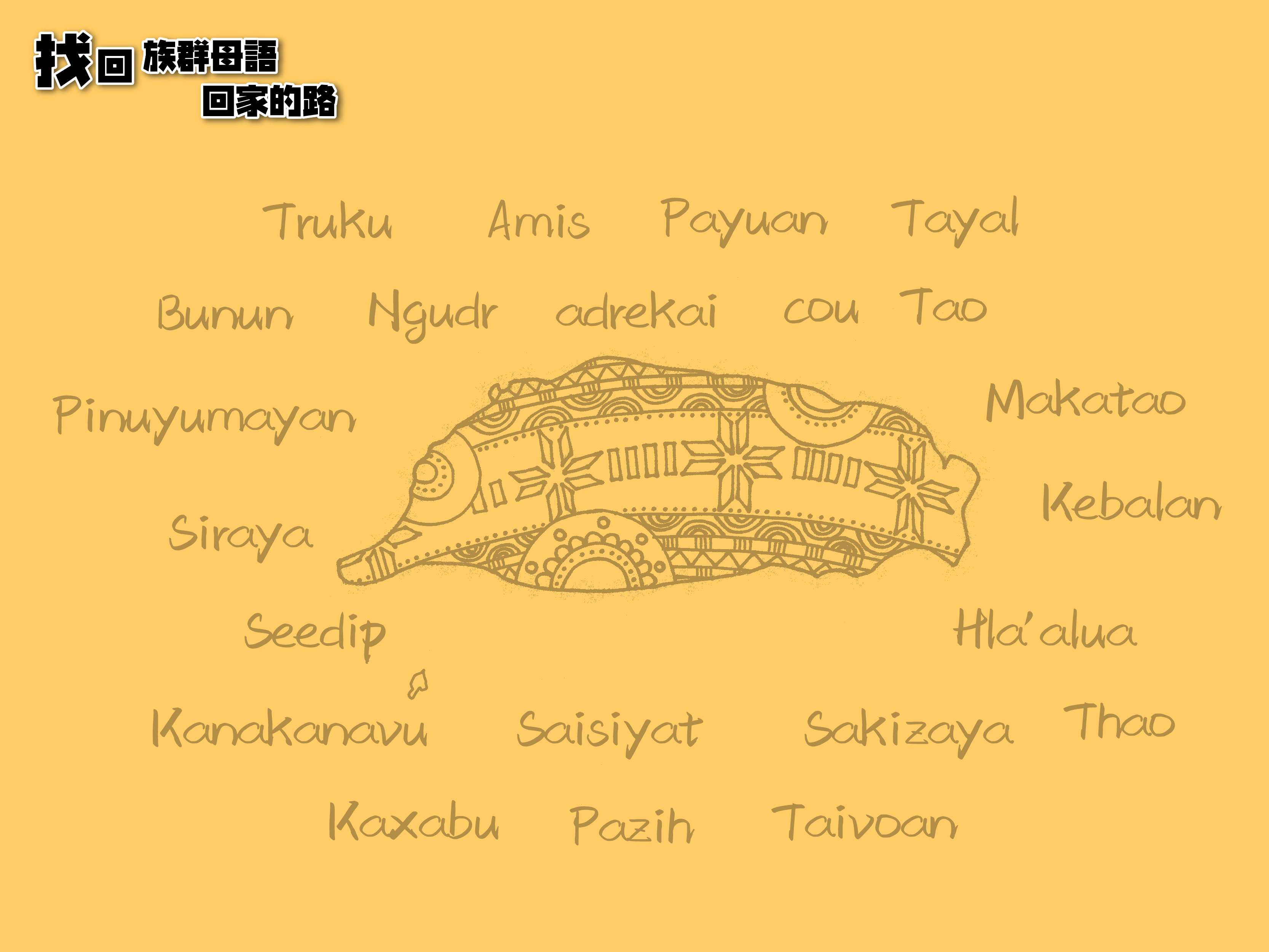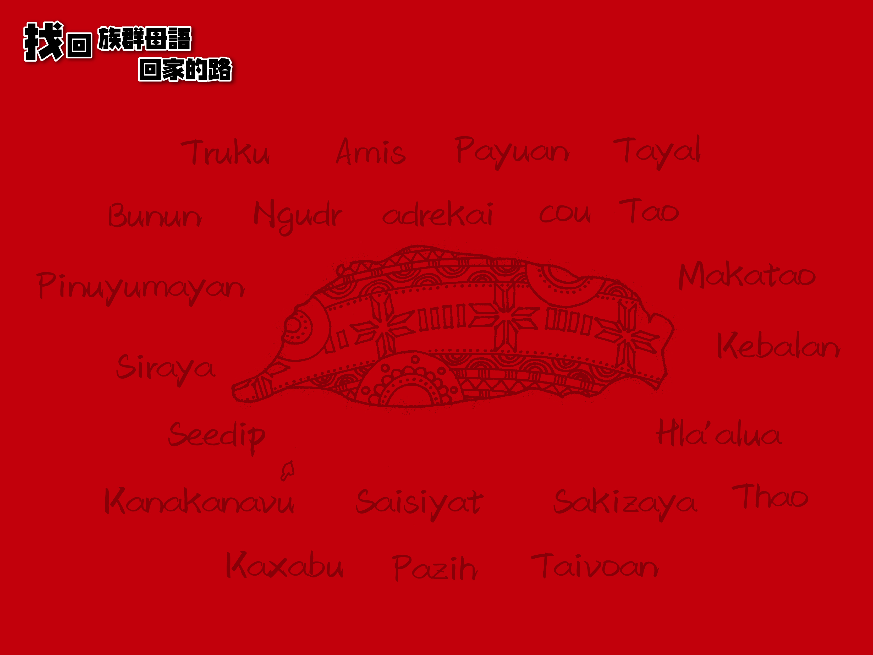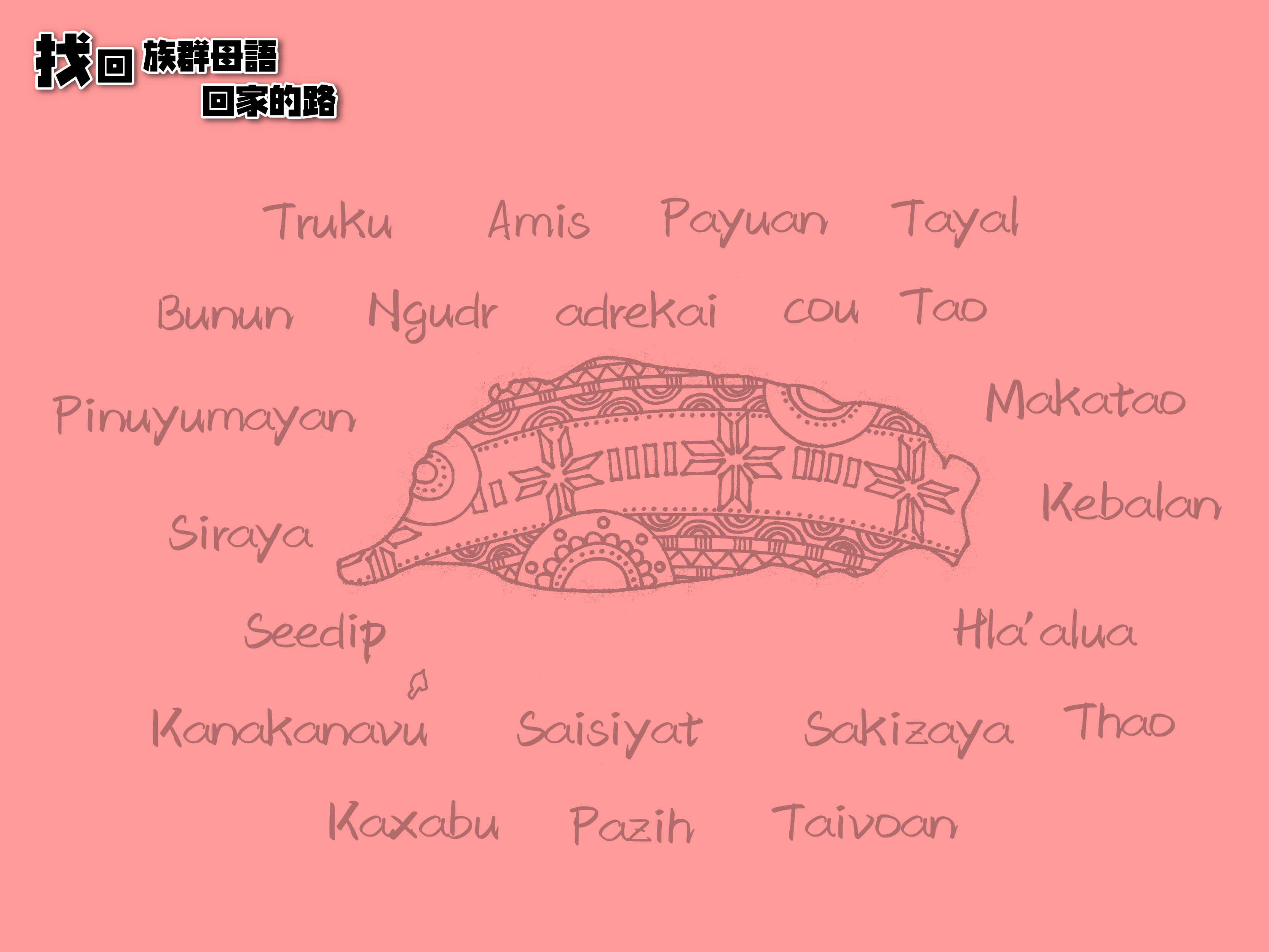 找回族群母語回家的路 「當稱謝進入他的門;當讚美進入他的院。當感謝他,稱頌他的名!因為耶和華本為善。 他的慈愛存到永遠;他的信實直到萬代。」(聖經詩篇100:4-5) 敬愛的教會牧者、長老、執事和會友們,創造的主上帝,在巴別塔事件中, 闡明他所創造的語言是多元的,並喜悅我們用不同語言稱頌祂, 讓我們共同來守護和復振我們自己的語言與文化。