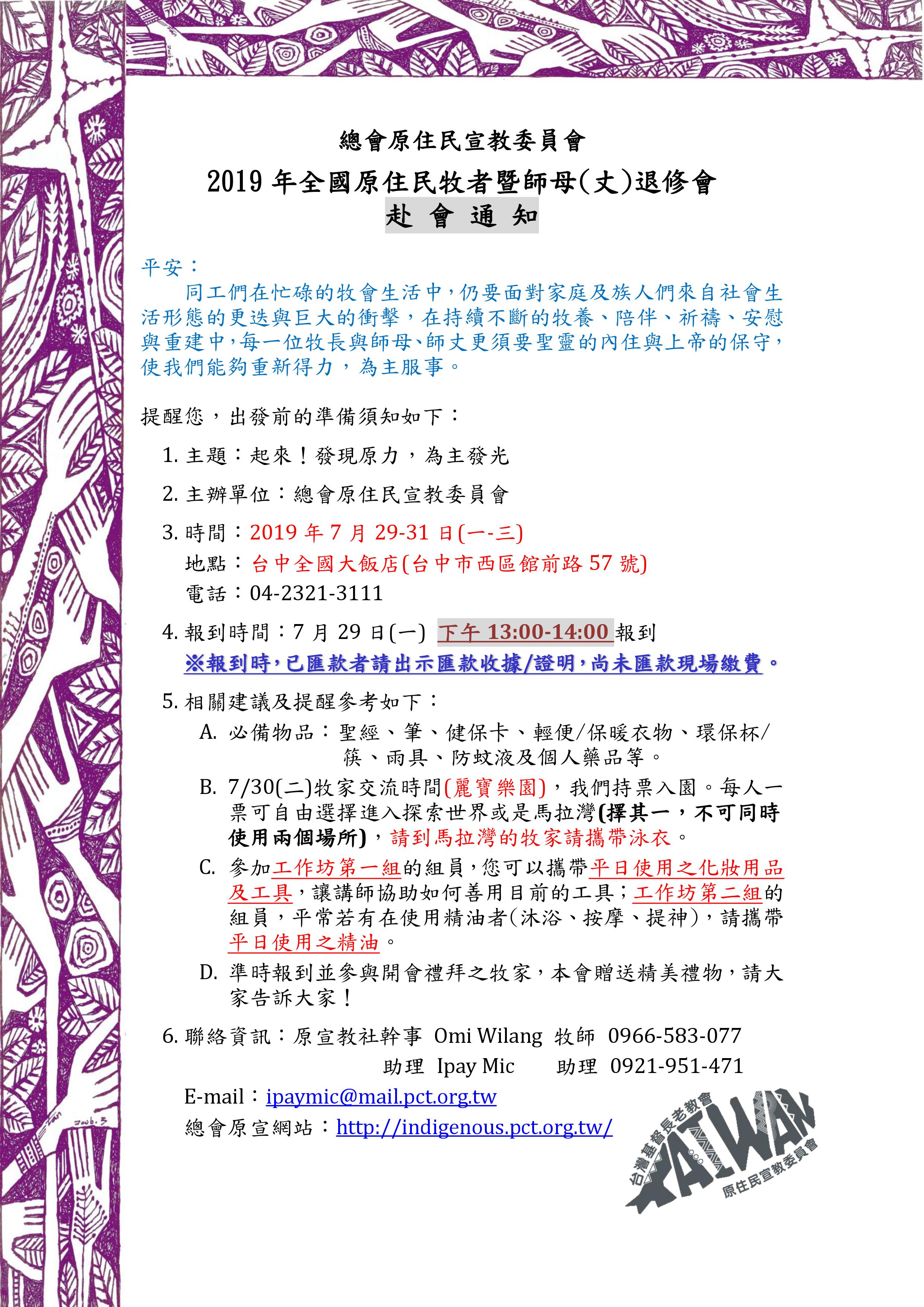 2019年全國原住民牧者暨師母(丈)退修會-赴會通知.pdf