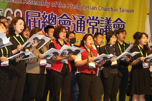 大專工作者、青年/大專事工委員會委員共組聯合詩班獻詩「沒有愛,就無意義」 第68屆台灣基督長老教會總會通常議會4月18-20日於凱達大飯店召開。今年有618名正議員、51位參議員、6位觀察員,另有約40名國內外教會機構代表與會。