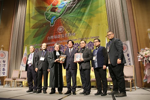 副總統賴清德(右7)18日出席台灣基督長老教會第68屆總會通常議會。(圖:中央社)