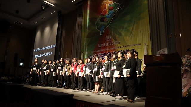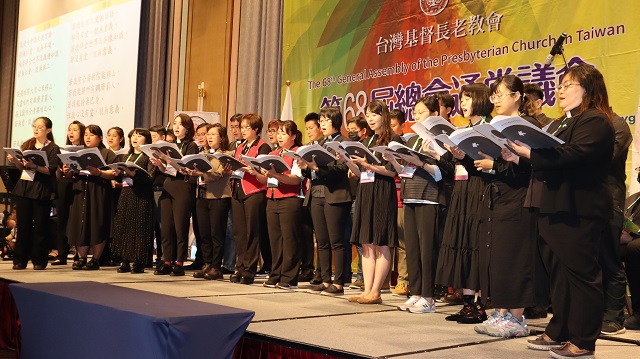 (攝影/林宜瑩) 【邱國榮台北報導】台灣基督長老教會第68屆總會通常議會,4月18日下午在台北凱達大飯店揭幕,主題為「傳承上帝國,塑造新秩序」,且今年訂為「青年」年,由第67屆總會議長戴碩欽牧師主禮開會禮拜,以「欲戴皇冠,必承其重」為證道的主題;他邀請所有正、參議員一同關心青年和大專宣教工作,強調要學習基督耶穌的模範,效法其所犧牲、謙卑的生命,並且在面對教會事工和議會議案時,都要本著信仰關鍵的核心——「愛」。 這場禮拜,由淡江高中音樂班管弦樂團演奏序樂,並由青年Lezeme Godhu(尤天予)以魯凱族語、謝明翰以客語、大專生陳致綸以台語、傳道師蔡坤育以華語、牧師Coko’ Panong(主顧兒・巴弄)以阿美族語等人參與宣召啟應、信仰告白、啟應文、讀經、獻詩等服事。