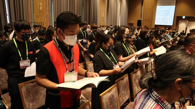 在信息後,眾人首先思念聖徒,記念在第67屆年度期間安息之牧師與牧師娘,後恭守聖餐與奉獻。奉獻事奉者由各地大專學生中心工作者與原住民中會青年牧者代表等擔任。 回應時段,總會青年事工委員會主委賴音婷姊妹「為新時代未來展望」代禱,呼籲青年反省自身的軟弱,深化與時代的關係,並且以開放的態度與主相遇,透過足夠的溝通與對話,為新時代帶出和諧;同時,願意持續謙卑與上帝同行,參與讀經運動,回應公義實踐信仰,致力於建造一個擁抱生命且具有包容性的教會。其他代禱的事項分別是為世界與台灣局勢、為青年宣教、傳揚上帝國福音等。 |