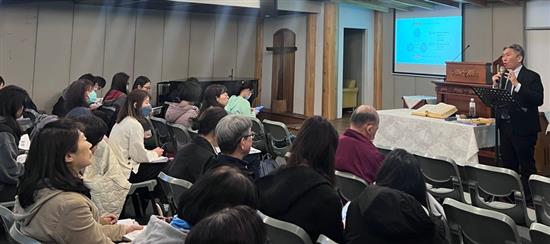 總會教育委員會教育幹事李位鼎牧師先分享總會教育事工。總會推動教育事工的最核心目的,是為了培育信徒,塑造信徒成為合神心意的門徒。總會教育委員會的設立目的是成為中會及教會的後勤中心,由總會規劃與供應教材,中會及教會推動與執行信徒造就。總會教育委員會主要事工有三:(一)出版全人全齡的信徒培育教材。(二)舉辦師資培育及教材研習。(三)建構線上資源數位平台,將教材數位化,打造不受時間及空間侷限的24小時線上主日學。