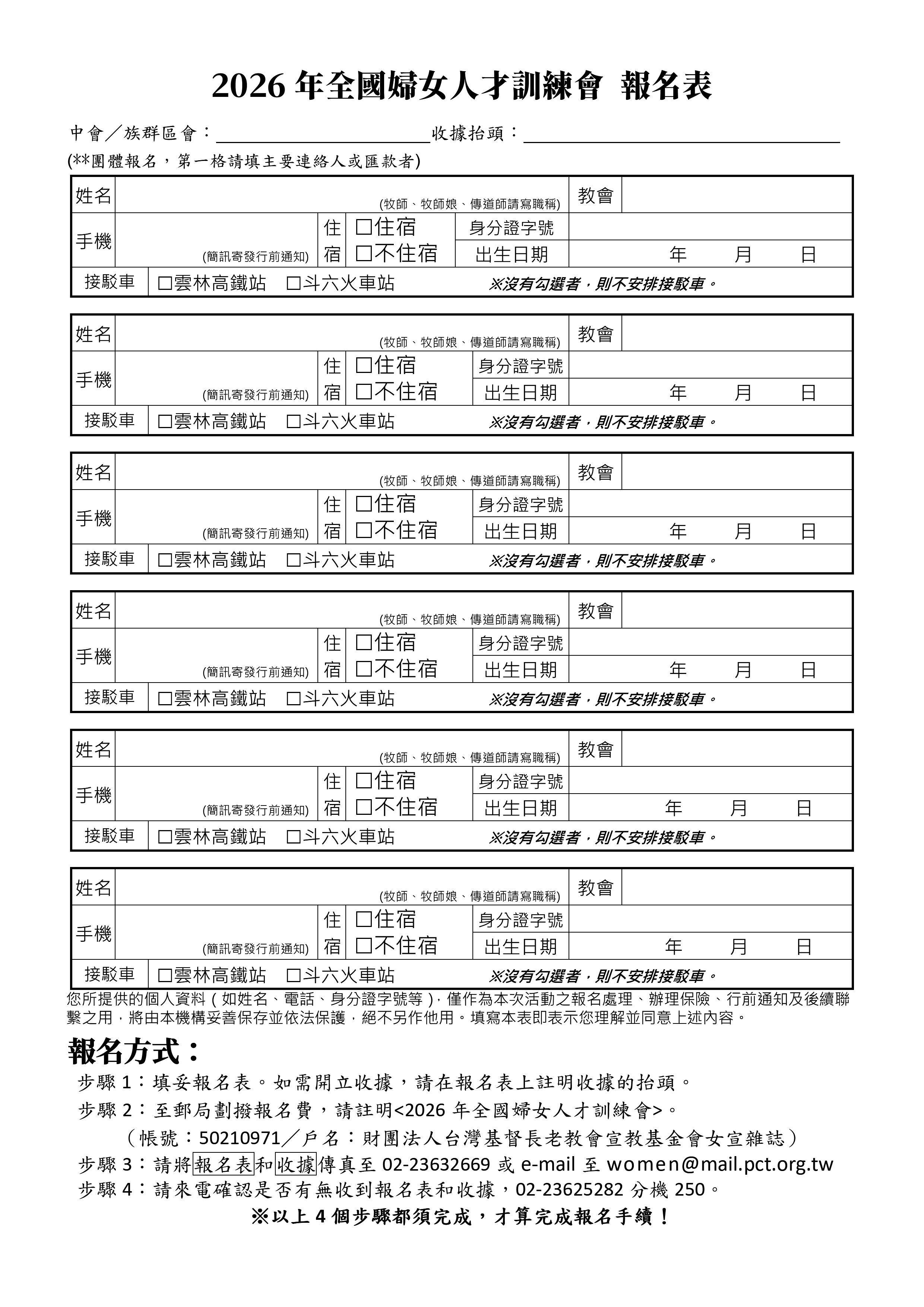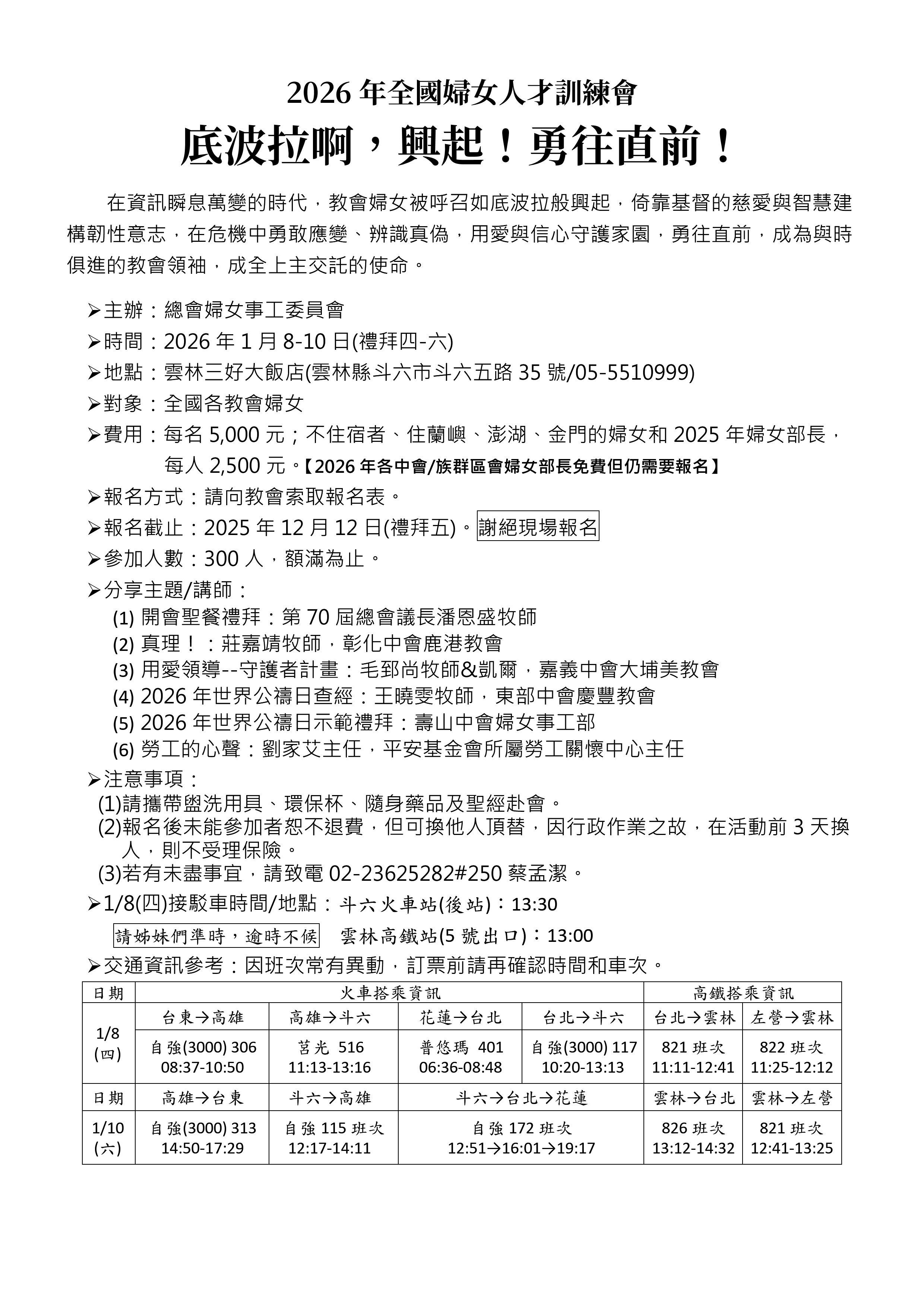 感謝各位姊妹對「2026 年全國婦女人才訓練會」的關心與報名。