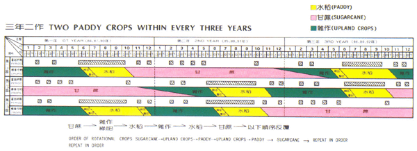 三年種兩次水稻,一次甘蔗與兩次雜作,水稻全程灌水,甘蔗間歇灌
